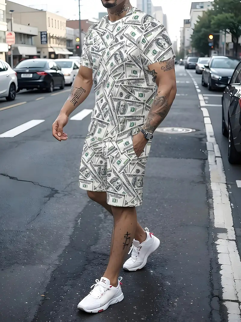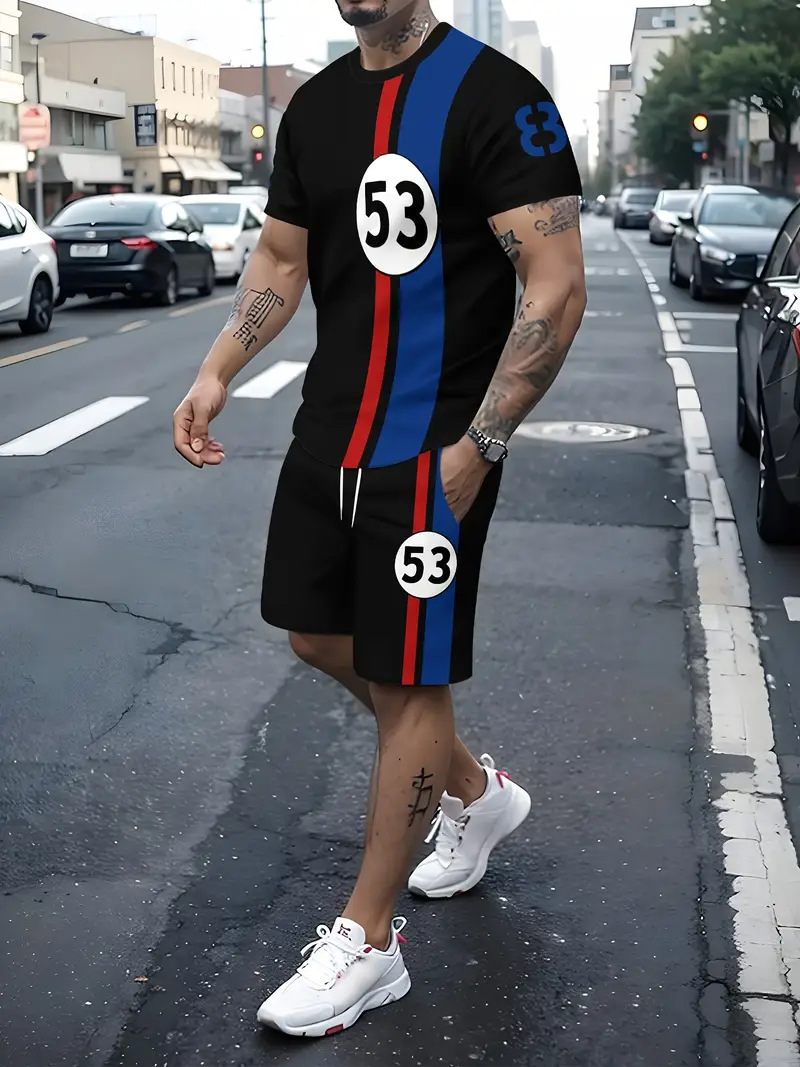 국경 간 대외 무역 여름 새로운 남자 반팔 세트 스포츠 세트 남자 반바지 반팔 티셔츠 캐주얼 세트스토어 가기
