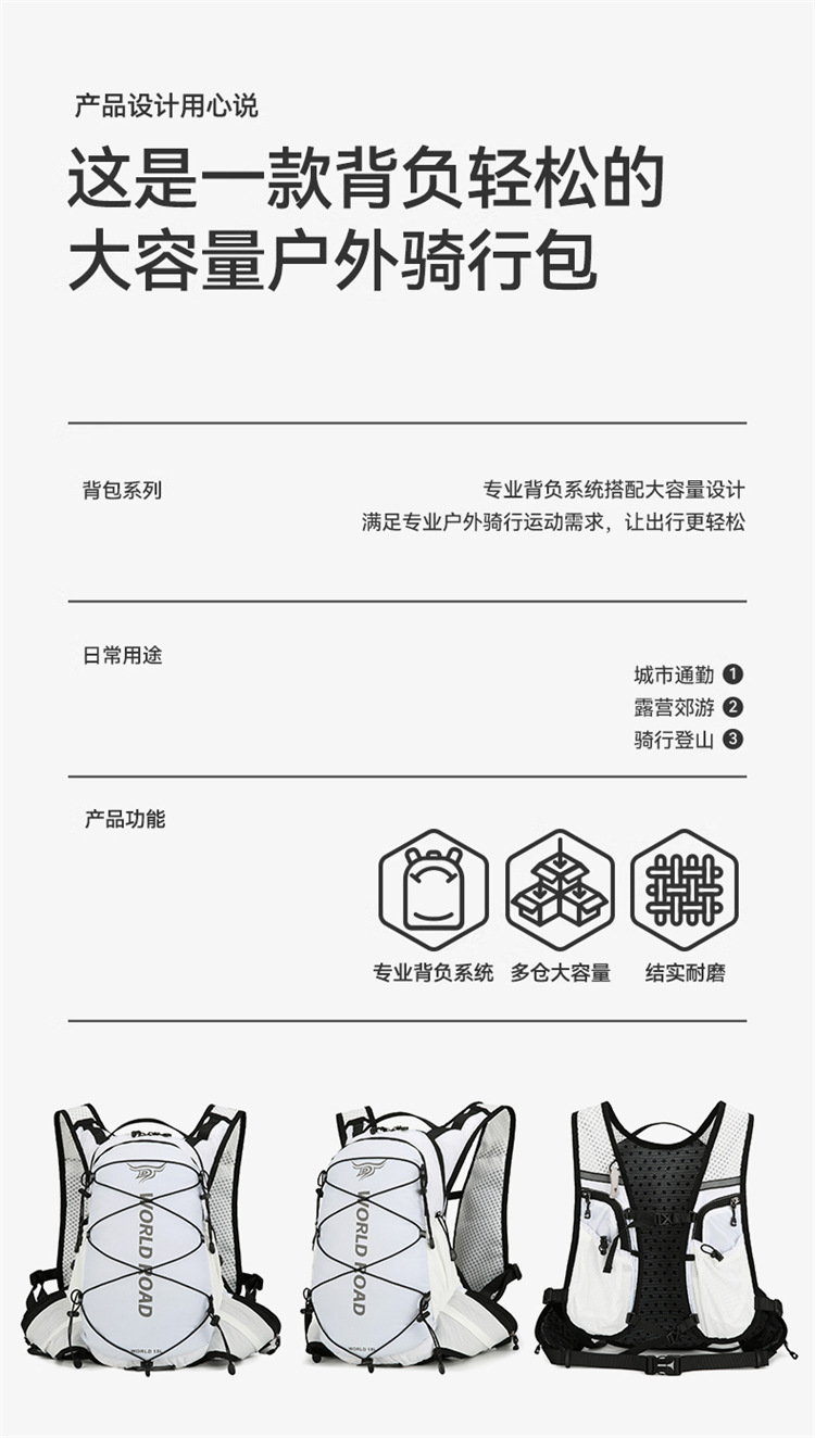 도로 워커 15L 등산 가방 반 튀는 크로스 컨트리 라이딩 배낭 국경 스포츠 배낭 마라톤 워터 백 가방
