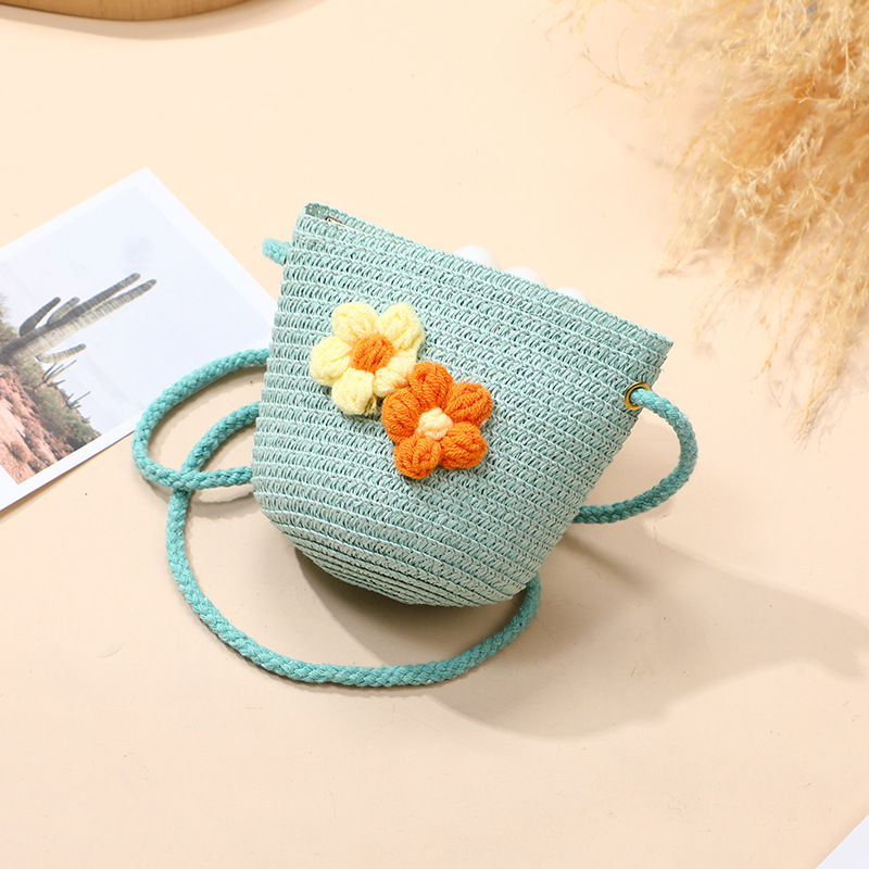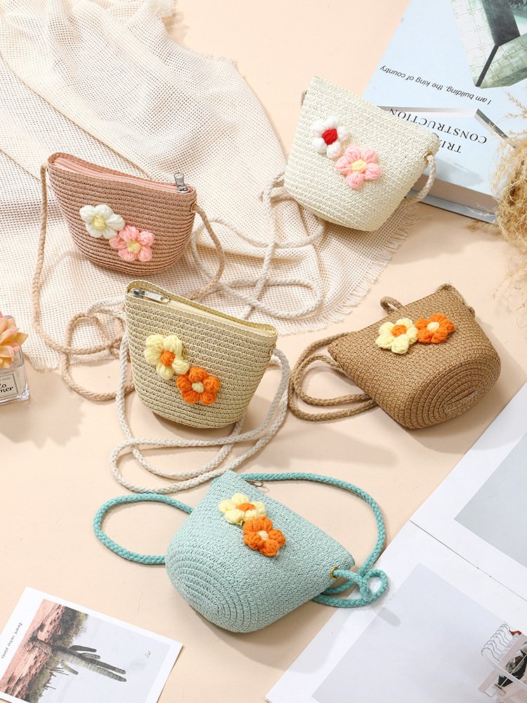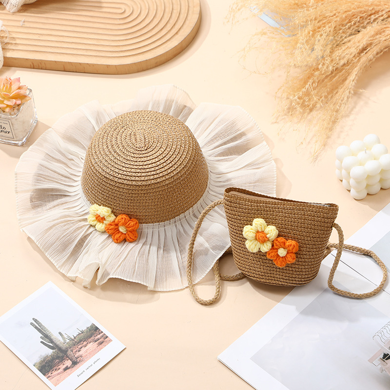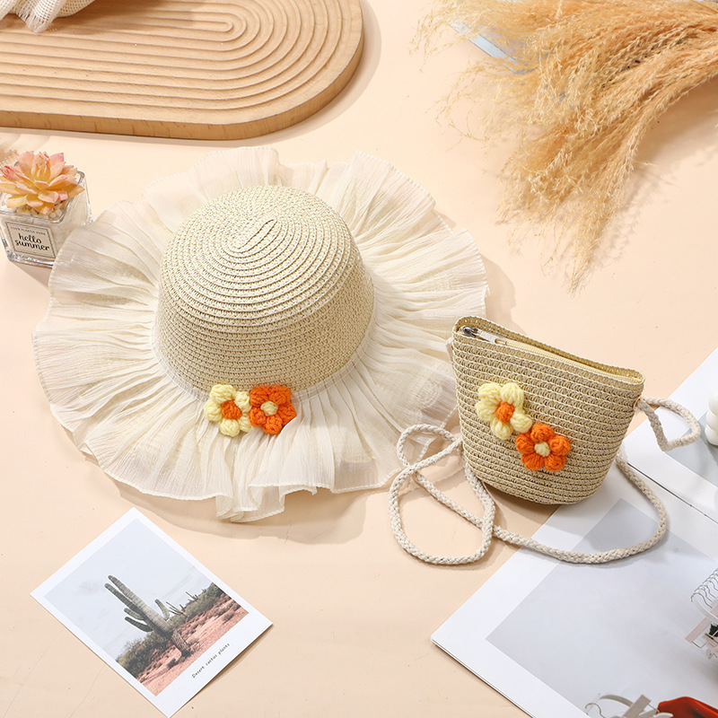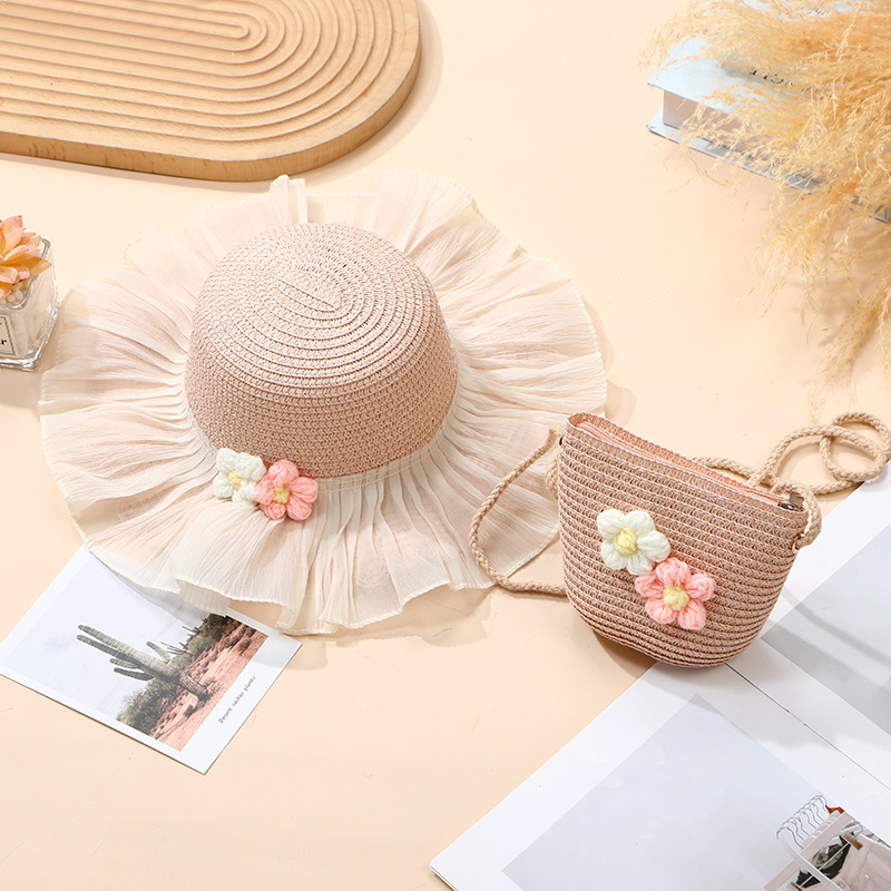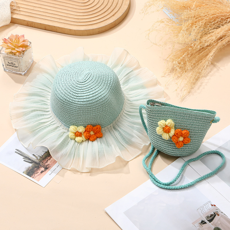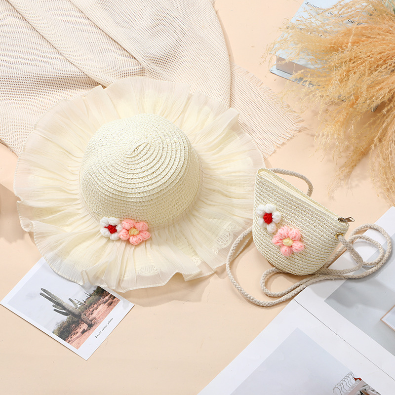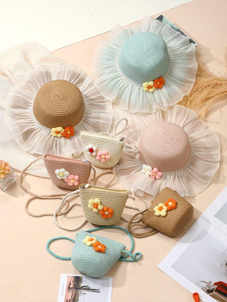 여름 소녀 양산 밀짚 모자 해변 선 스크린 공주 작은 소녀 모자 가방 크로스 바디 스트로우 가방 짠 가방스토어 가기