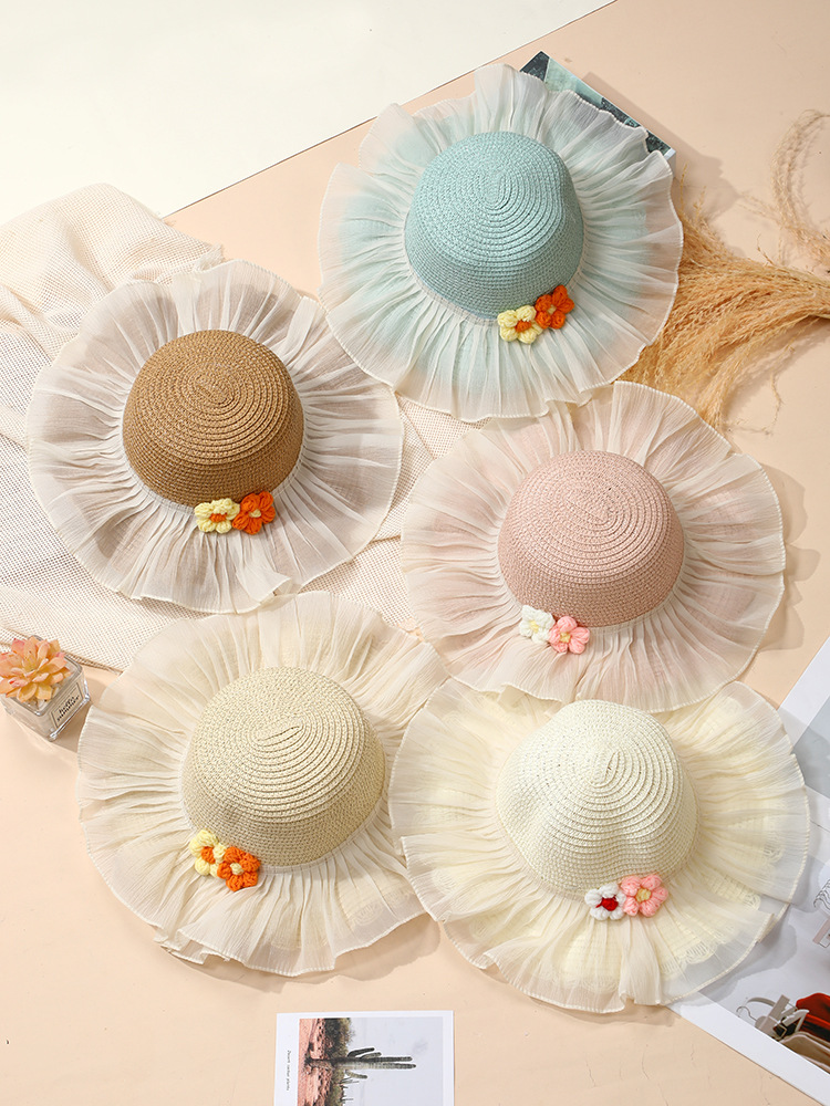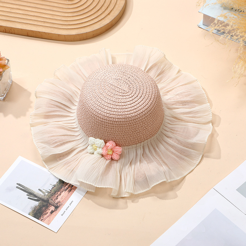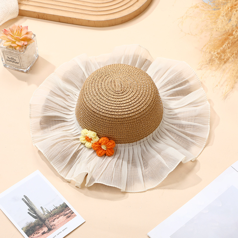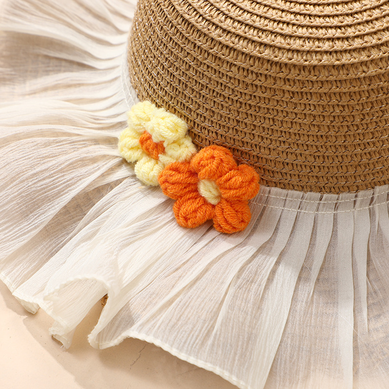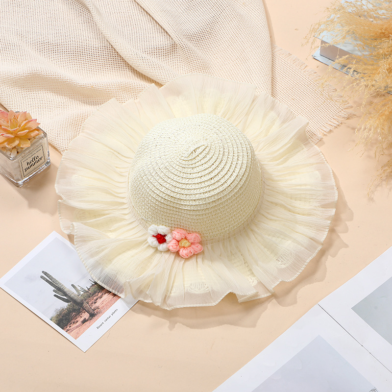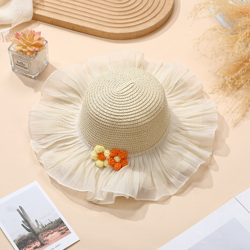 • 베이지색 모자 레이스 울 꽃