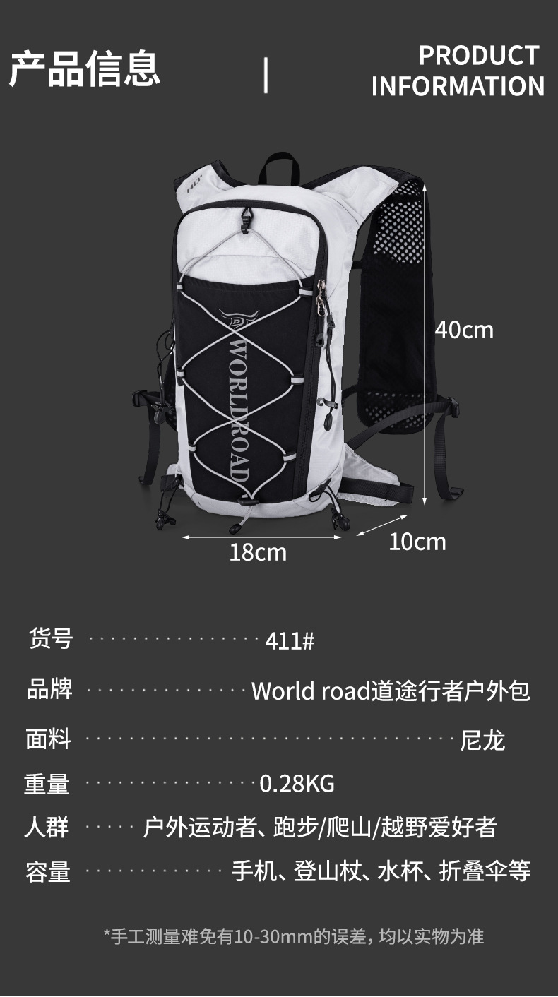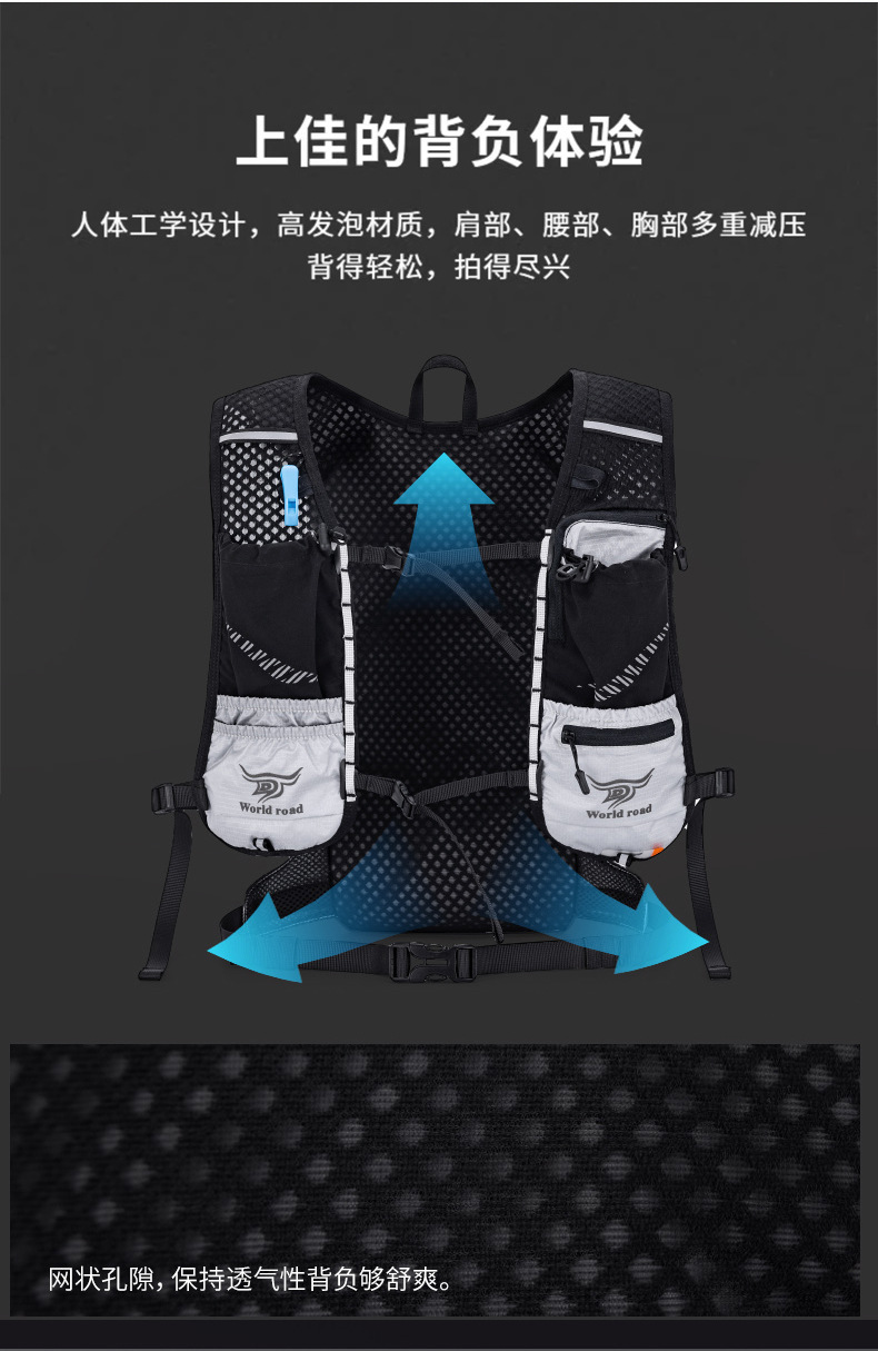 Road Walker 국경 간 새로운 다기능 러닝 배낭 마라톤 스포츠 배낭 사이클링 워터 가방