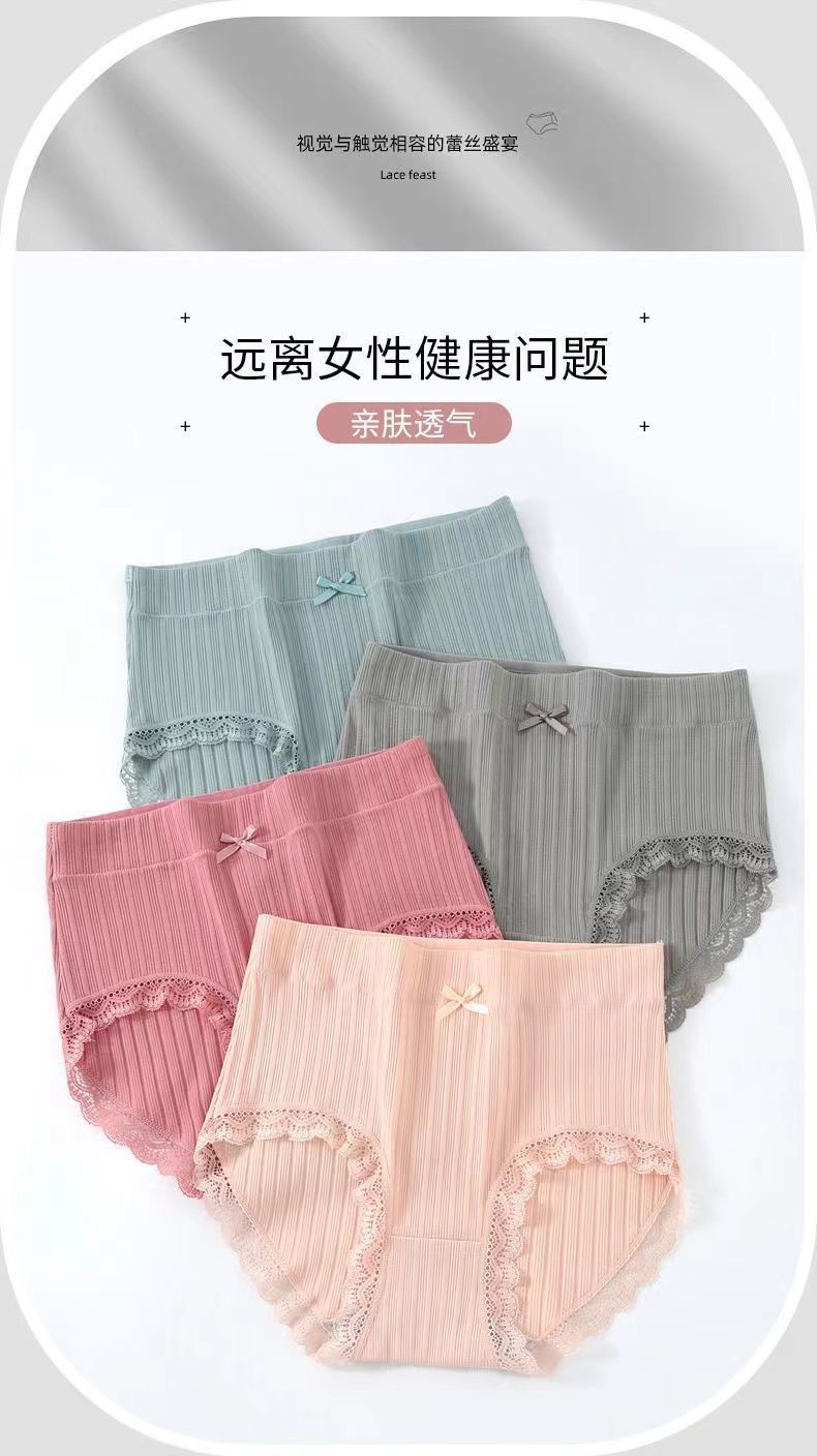 공장 도매 면화 높은 허리 배 속옷 여성의면 숙녀 섹시한 원활한 통기성 레이스 브리프스토어 가기