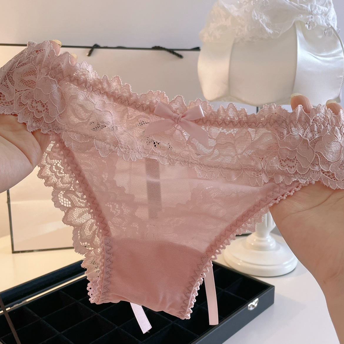 소녀의 섹시한 속옷 여성의 레이스 거즈 활 뒤 엉덩이 큰 할로우 레이스 업 낮은 허리 달콤한 숙녀 브리프스토어 가기
