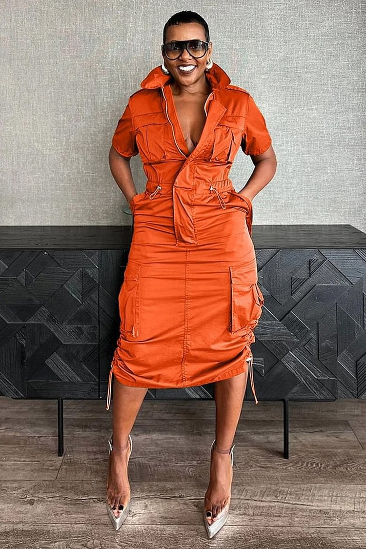 K3320 크로스보더 멀티 포켓 워크웨어 드로스트링 포켓 원피스