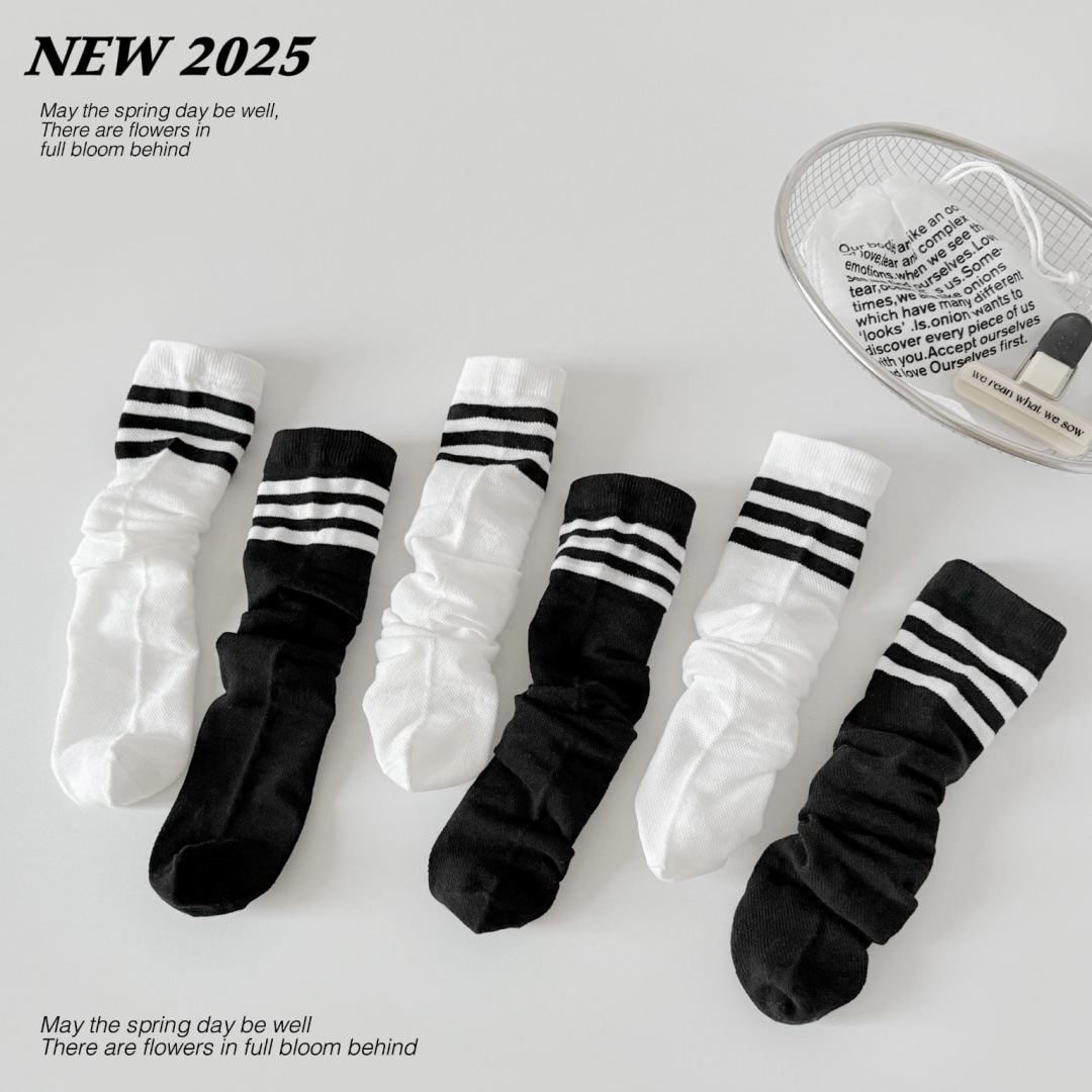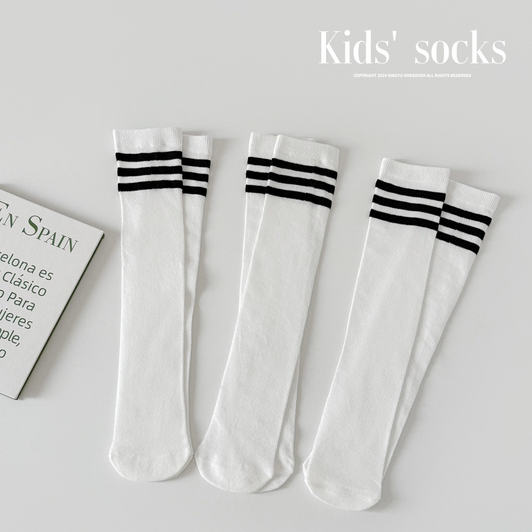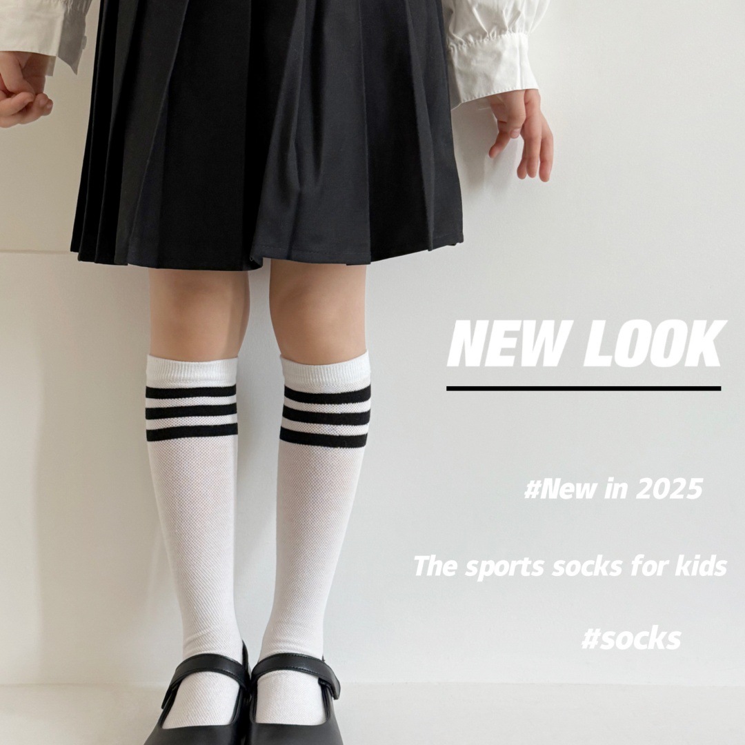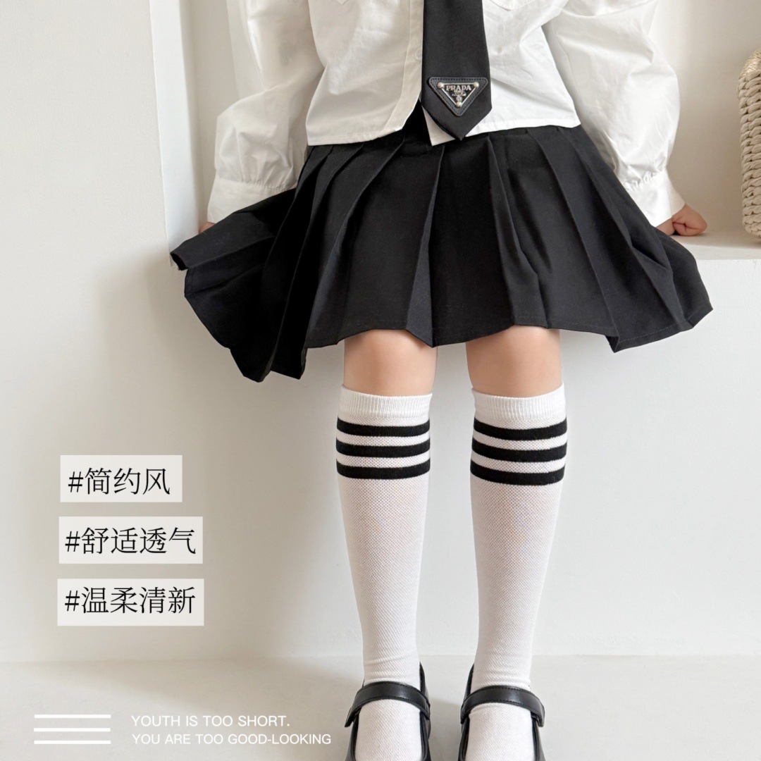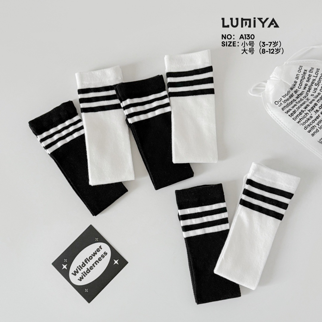 루미아 어린이 양말 2025 소년 소녀 아기 봄과 여름 어린이 양말 검은 줄무늬 2 바 고급 양말