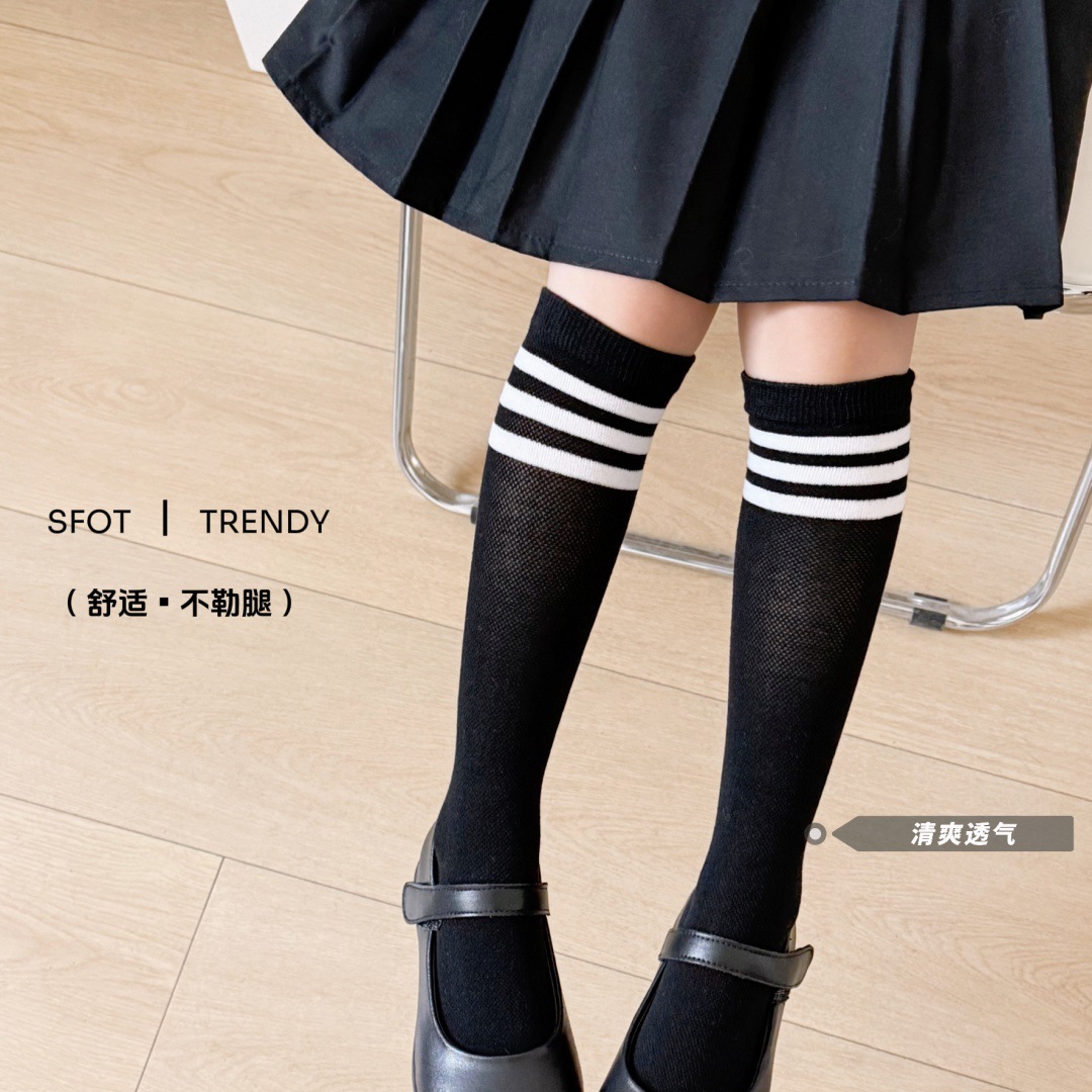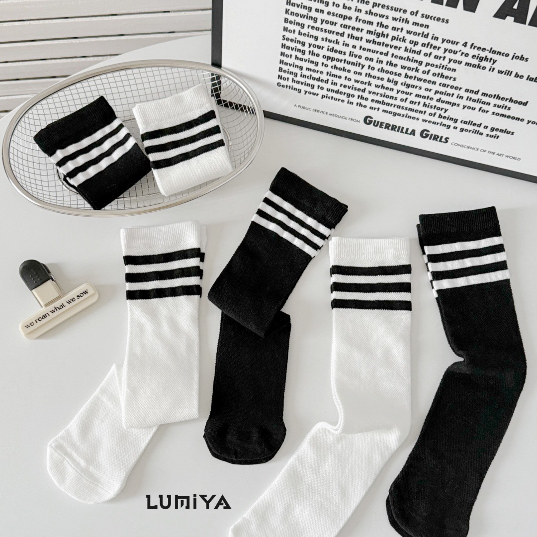 루미아 어린이 양말 2025 소년 소녀 아기 봄과 여름 어린이 양말 검은 줄무늬 2 바 고급 양말스토어 가기