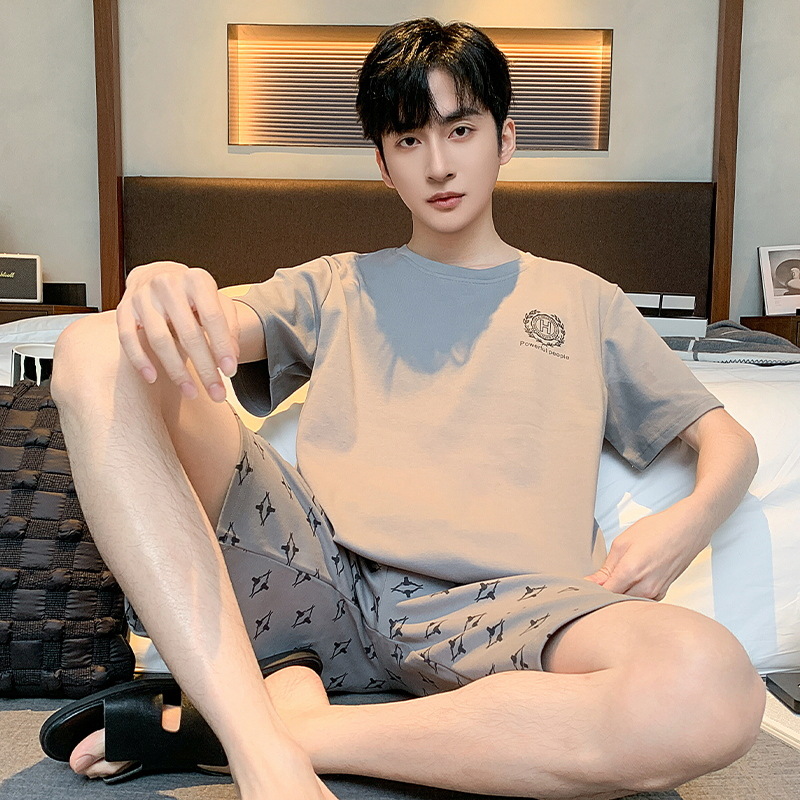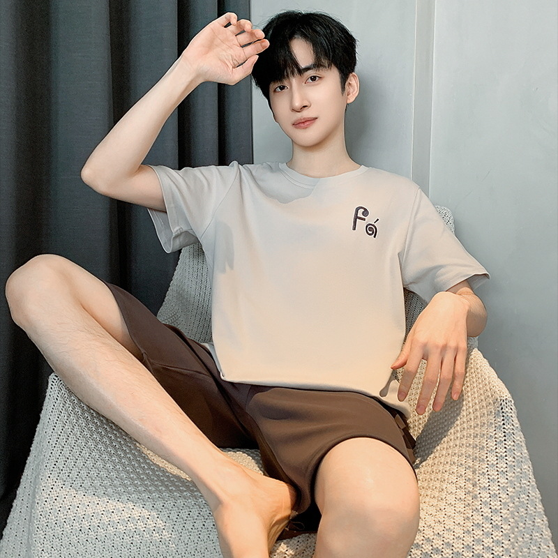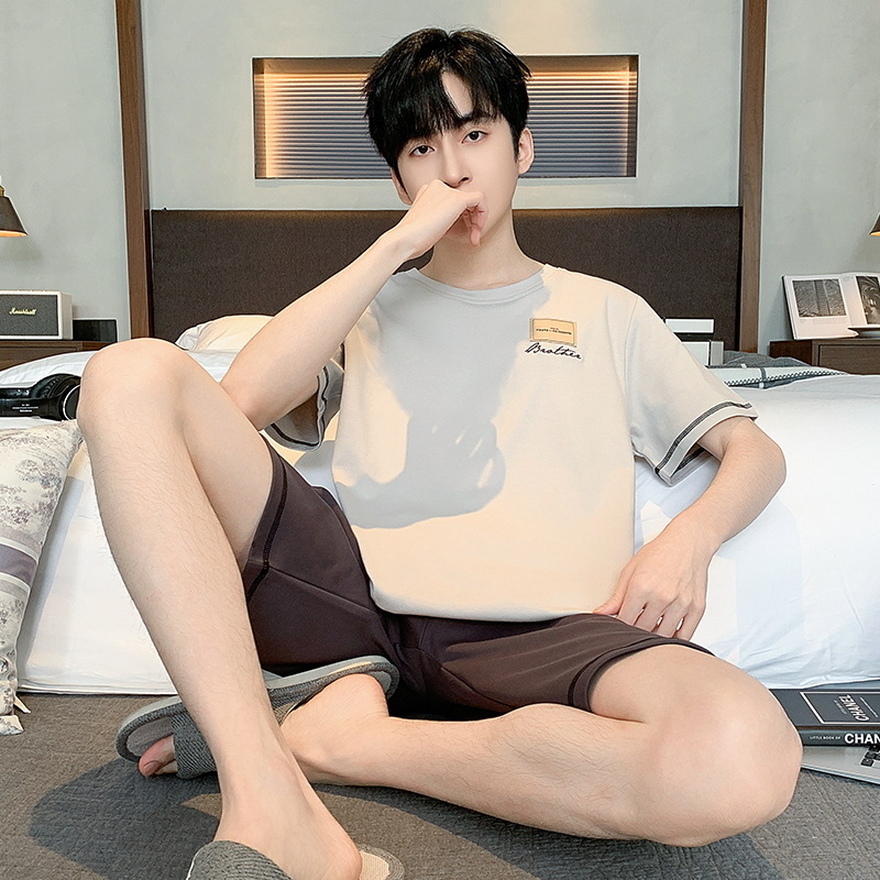 남자 잠옷 간단한 캐주얼 청소년 여름 한국 스타일 코튼 짧은 소매 반바지 남자 세트 홈웨어