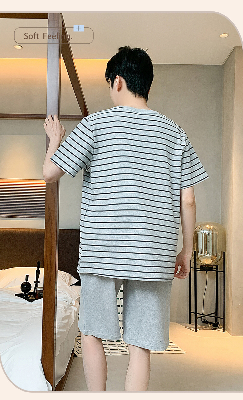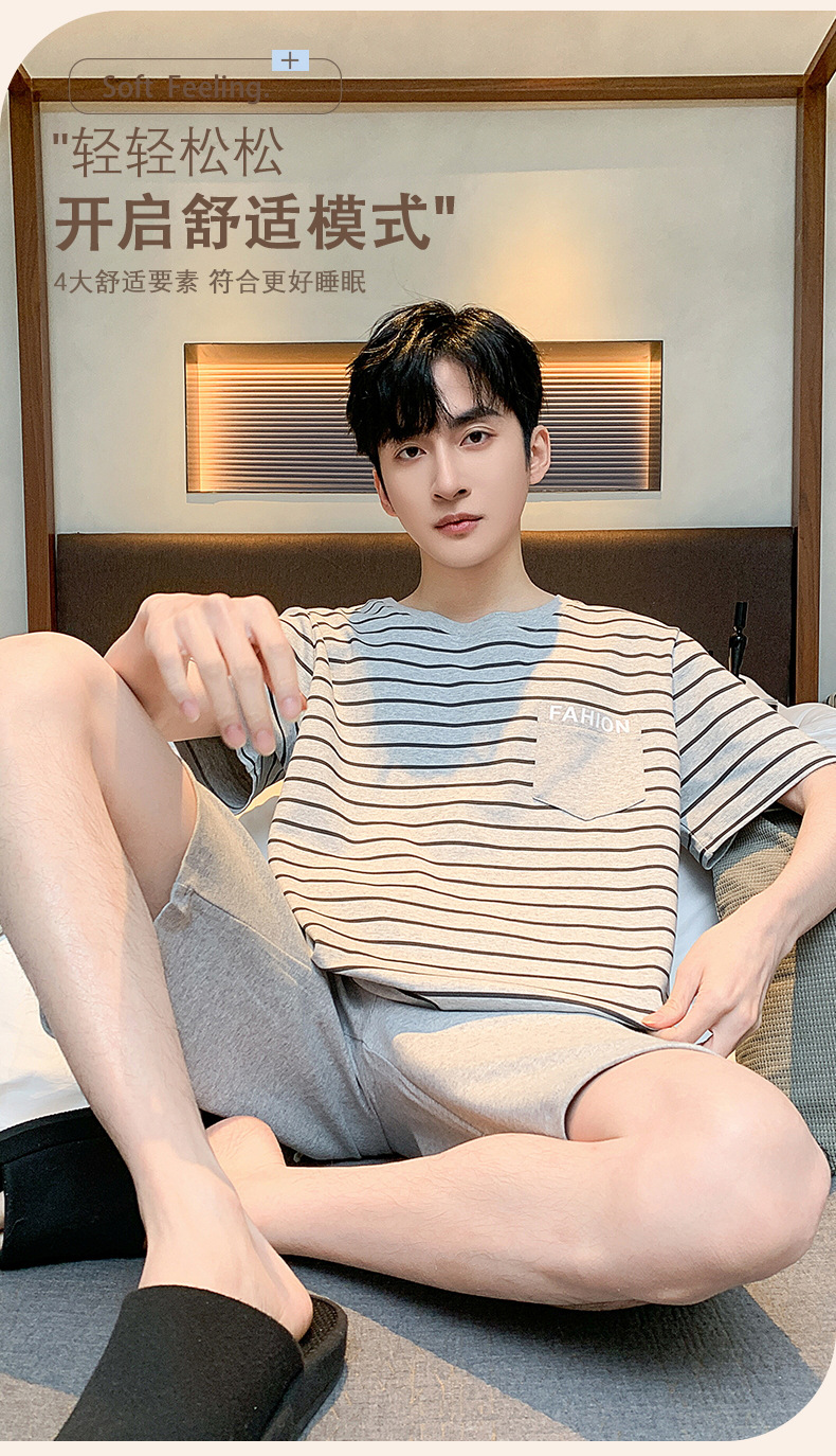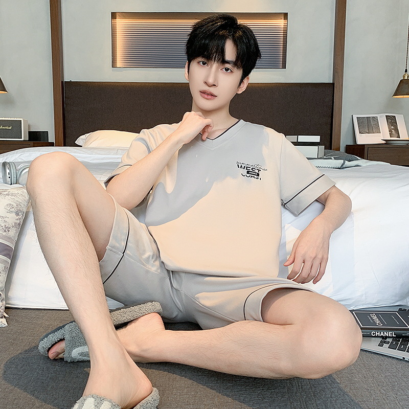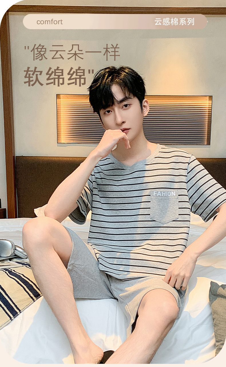 남자 잠옷 간단한 캐주얼 청소년 여름 한국 스타일 코튼 짧은 소매 반바지 남자 세트 홈웨어스토어 가기