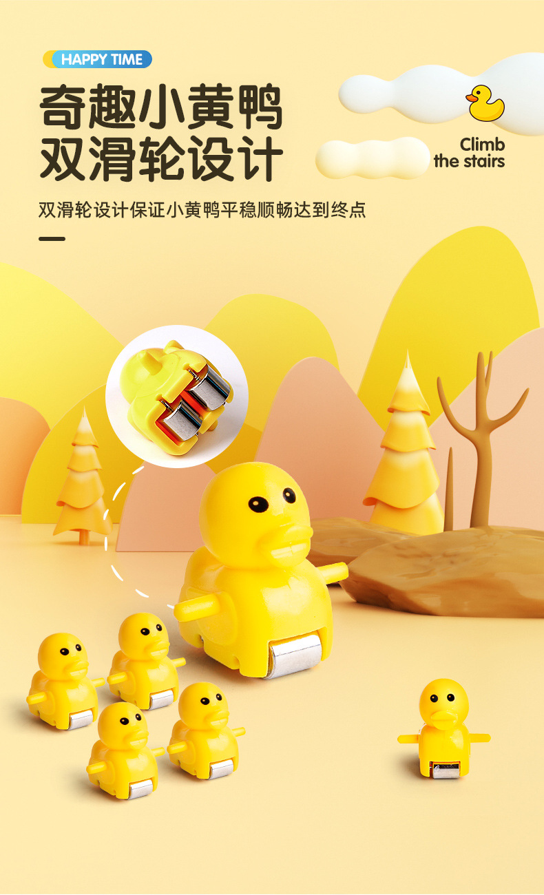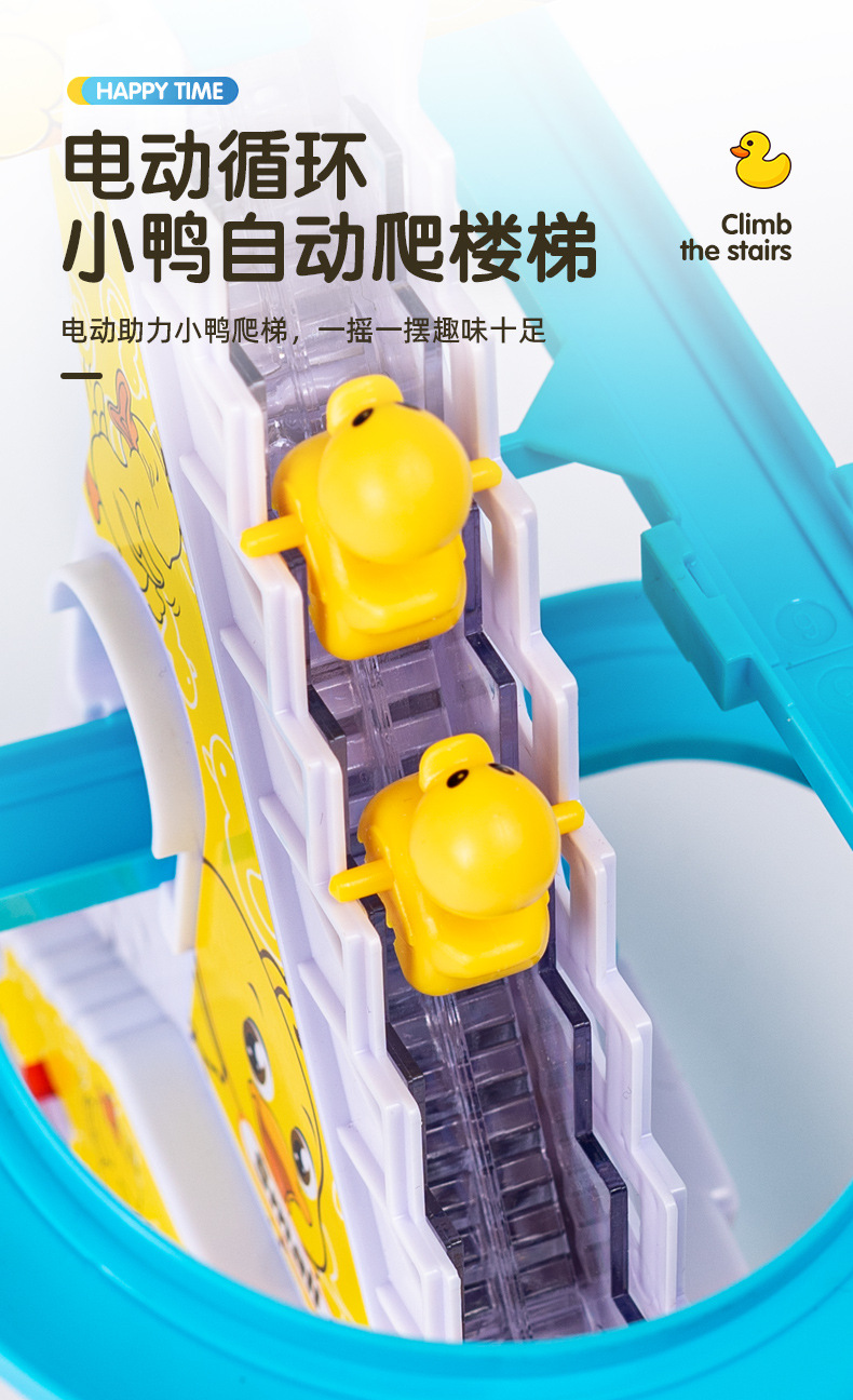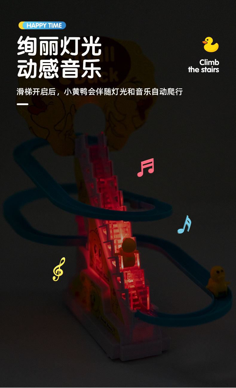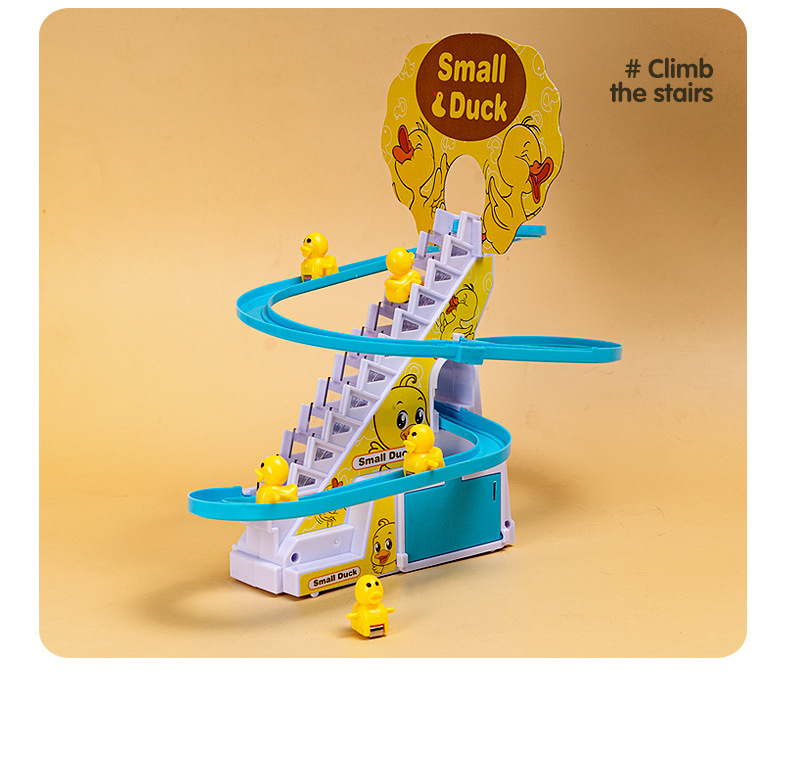 작은 노란색 오리 등반 계단 빛 음악 작은 오리 전기 슬라이드 퍼즐 조립 어린이 트랙 장난감 도매스토어 가기