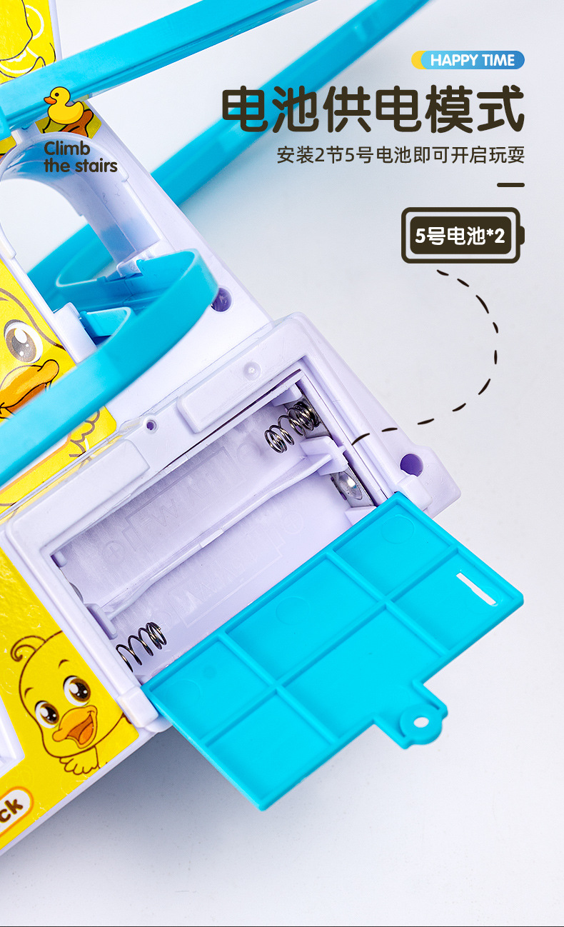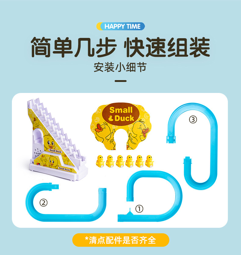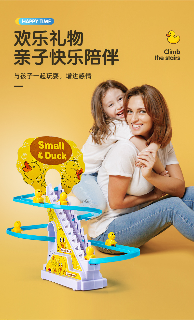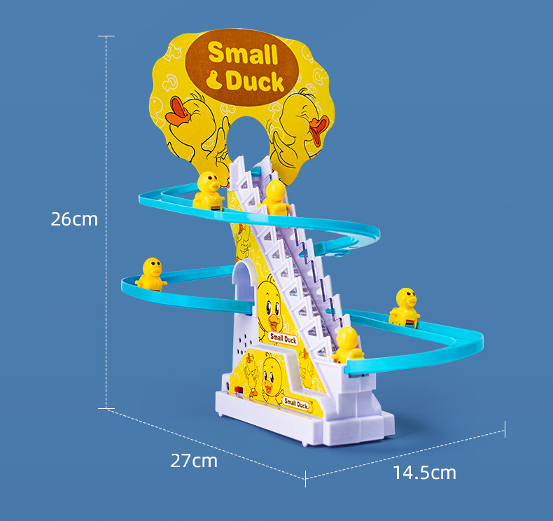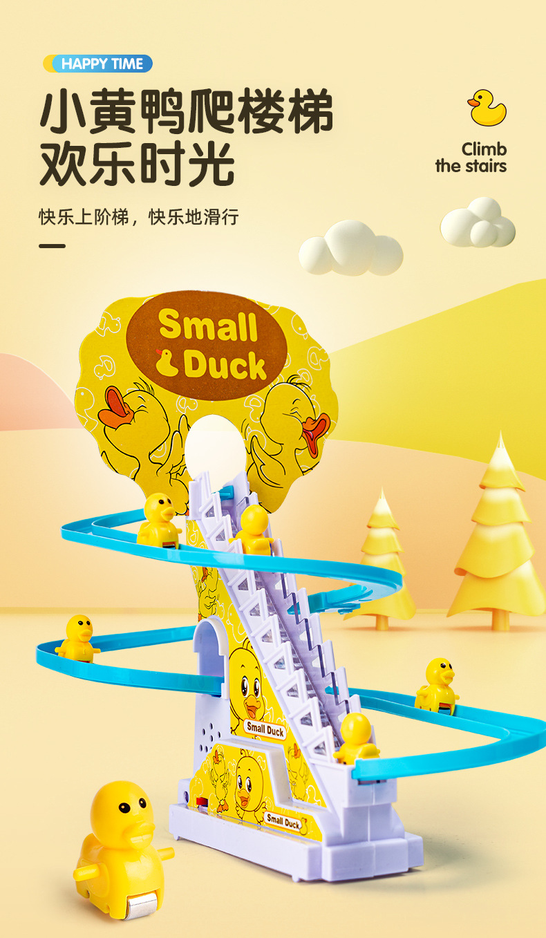 작은 노란색 오리 등반 계단 빛 음악 작은 오리 전기 슬라이드 퍼즐 조립 어린이 트랙 장난감 도매스토어 가기