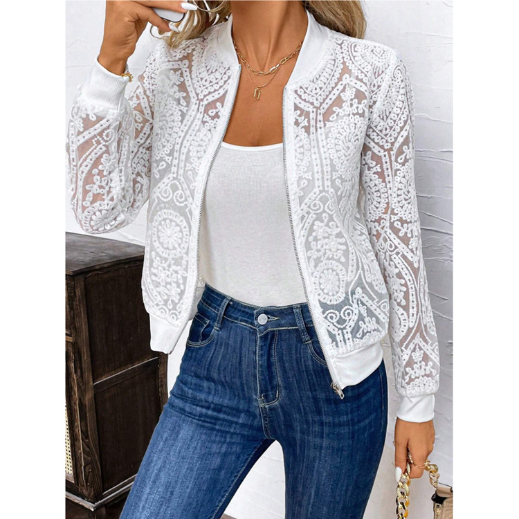 여성 투명 레이스 지퍼 프론트 재킷 패션 편안한 재킷 여성 외부 캐주얼 휴가 셔츠스토어 가기