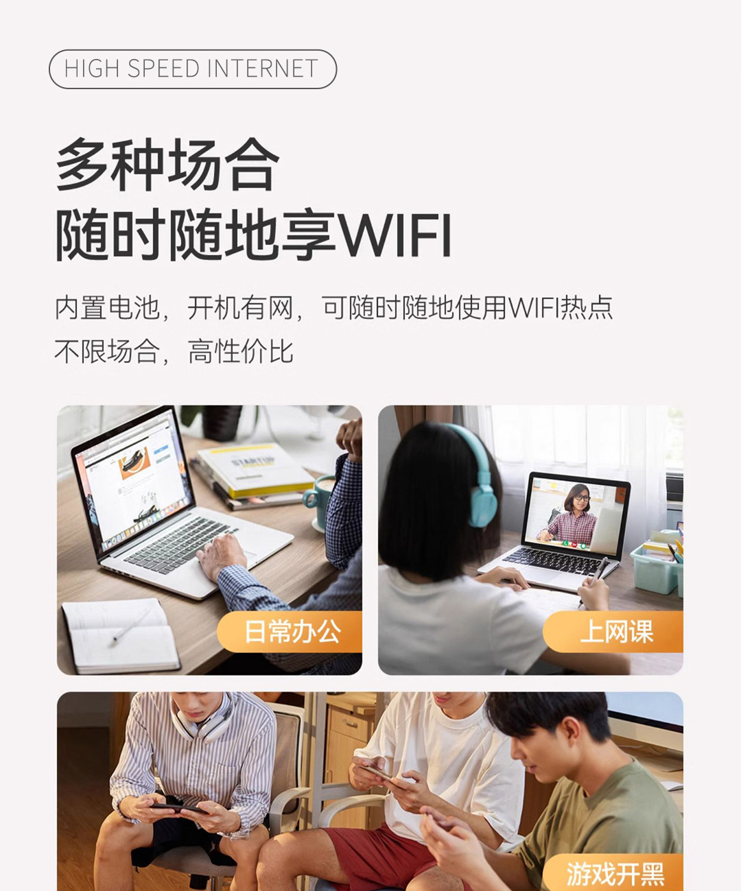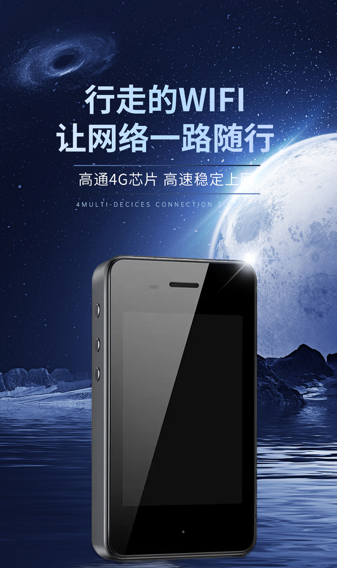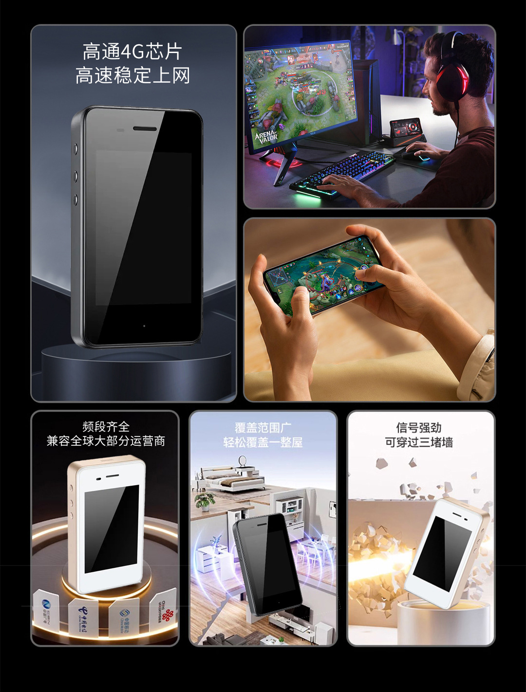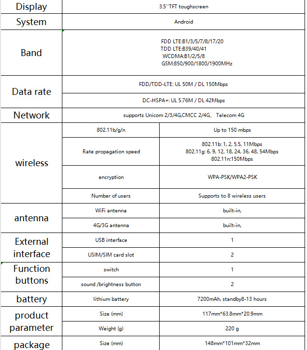 适用于全球大部分运营商,高通芯片 4G网速稳定 带充电宝功能 7200mah 3.5屏幕触控 双卡设计 无缝切换
