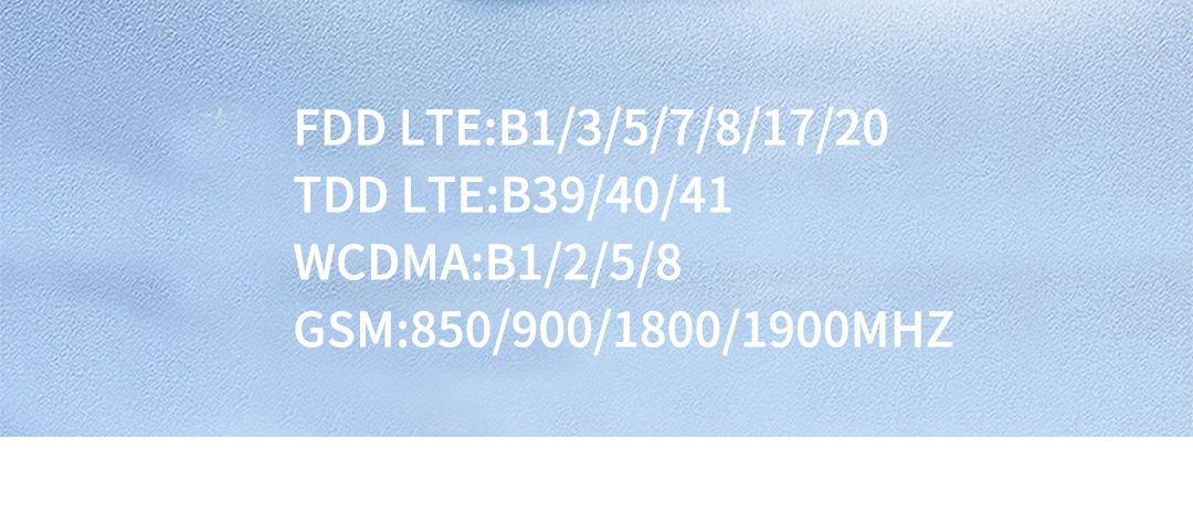 支持频段:  FDD LTE:B1/3/5/7/8/17/20