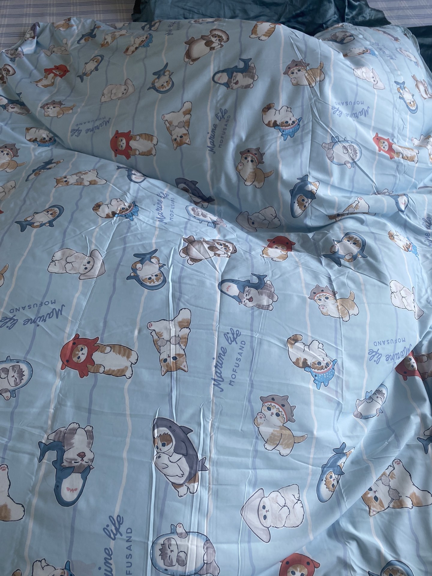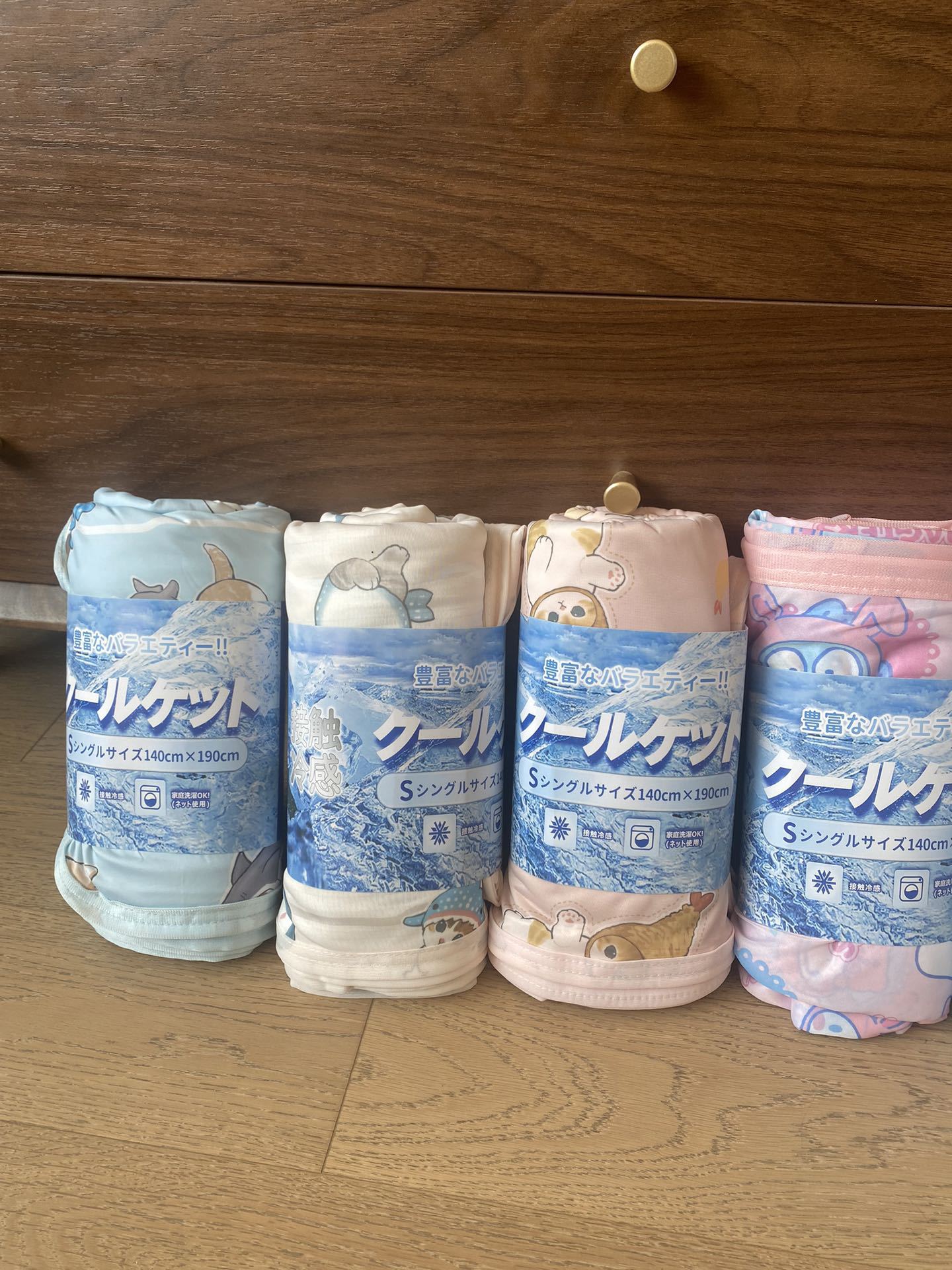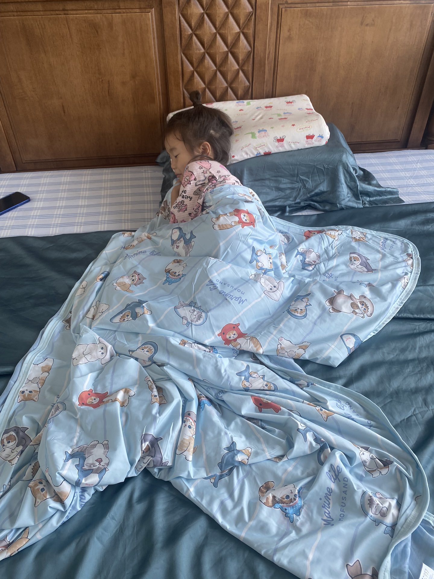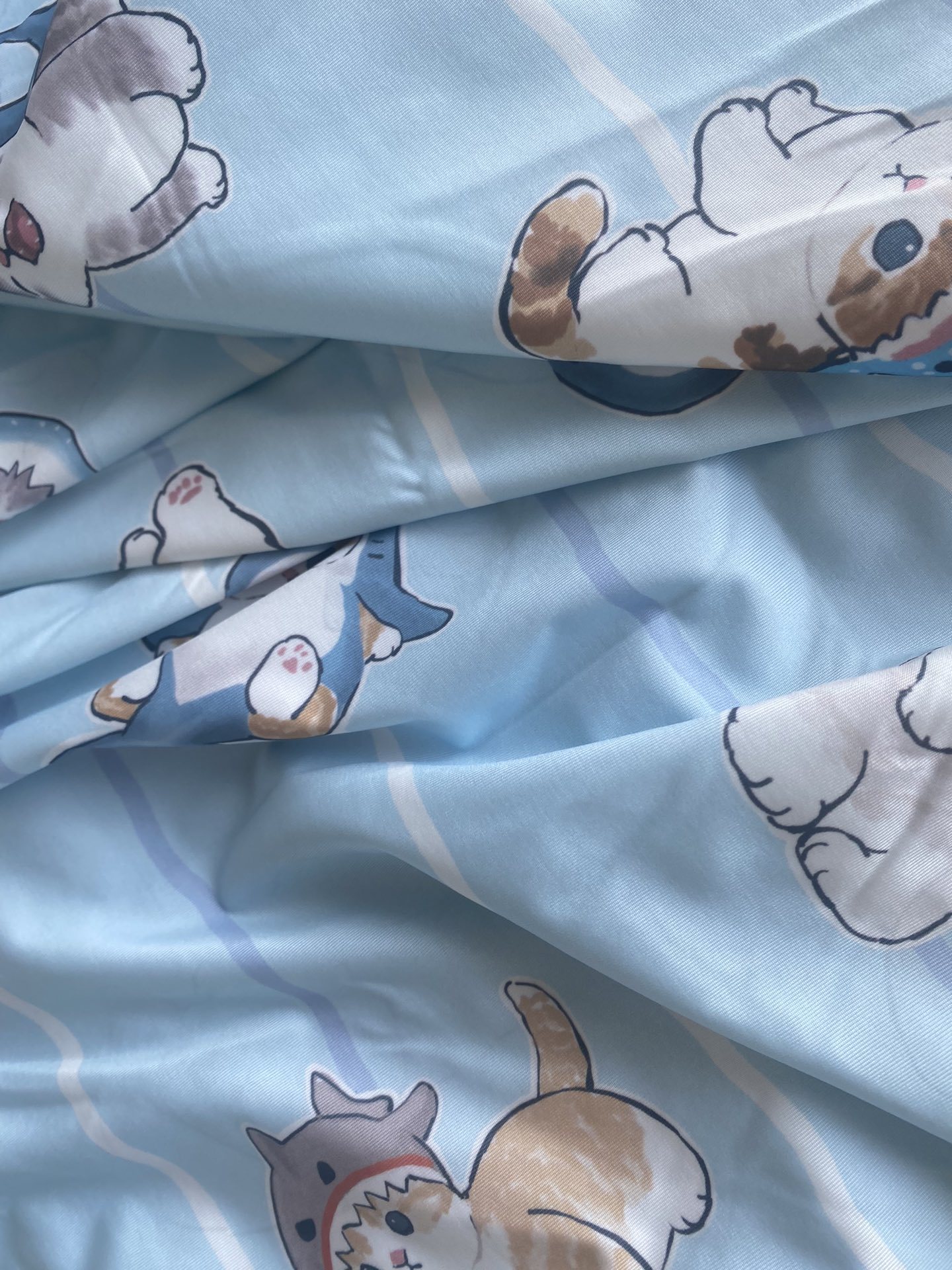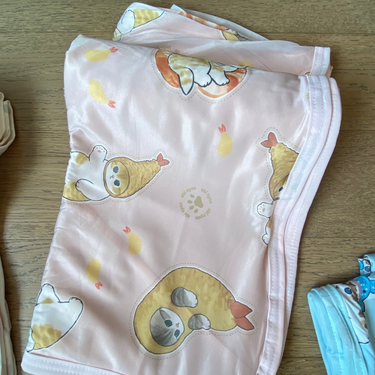 140*190日单外贸尾货夏凉毯空调冷感盖毯,可以当作午睡毯都是AB面的,一面带有图案的,一面顺色搭配的,订单批次不同毯子厚薄,克重都有差别,洗标也会因为批次不同有差别,介意的亲慎拍,。鲨鱼猫蓝色,鲨鱼猫米色,炸虾猫粉色,丑鱼,粉色变装,库洛米,玉桂狗,每个花色都好看呀,尺寸也够大,孩子大人都可以用的一款盖毯