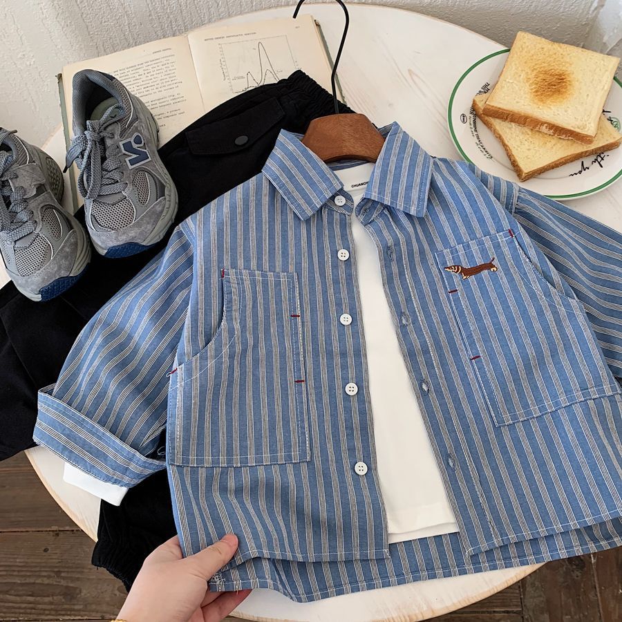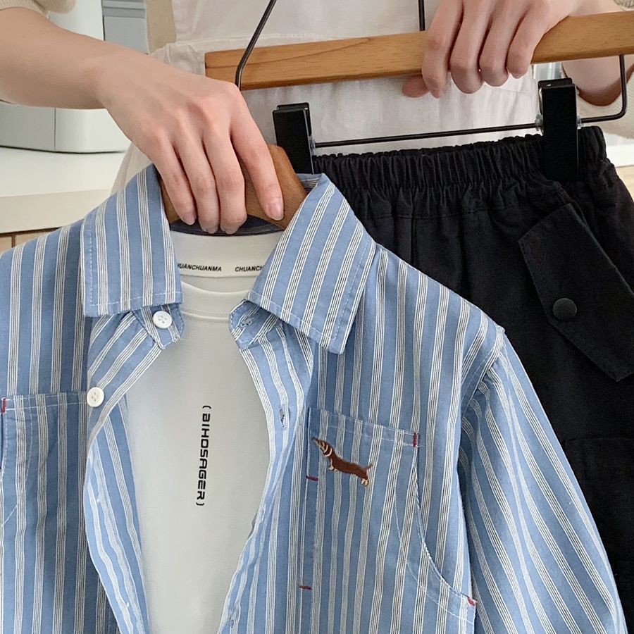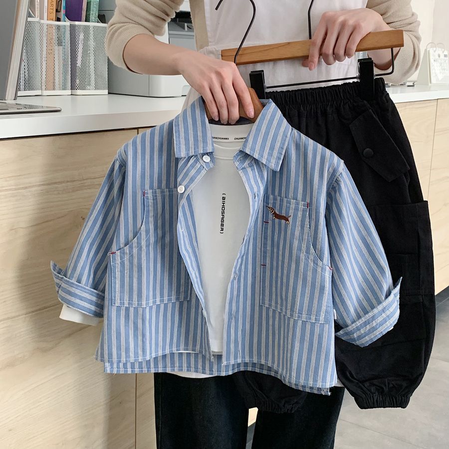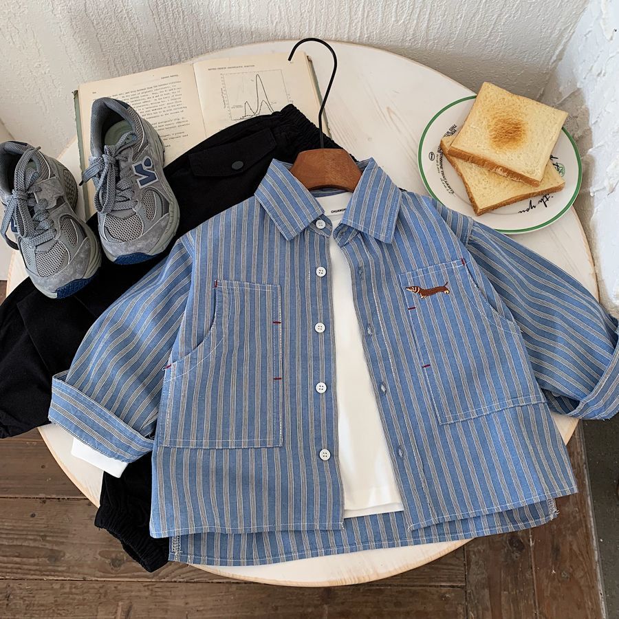 소년 스트라이프 셔츠 2025 가을 새 아기 캐주얼 잘 생긴 수 놓은 유치원 다목적 셔츠 카디건 유행스토어 가기
