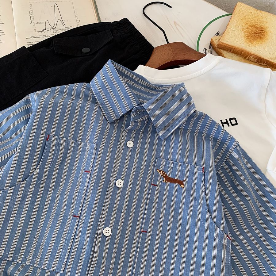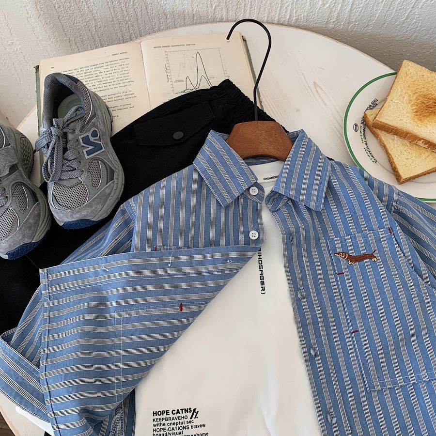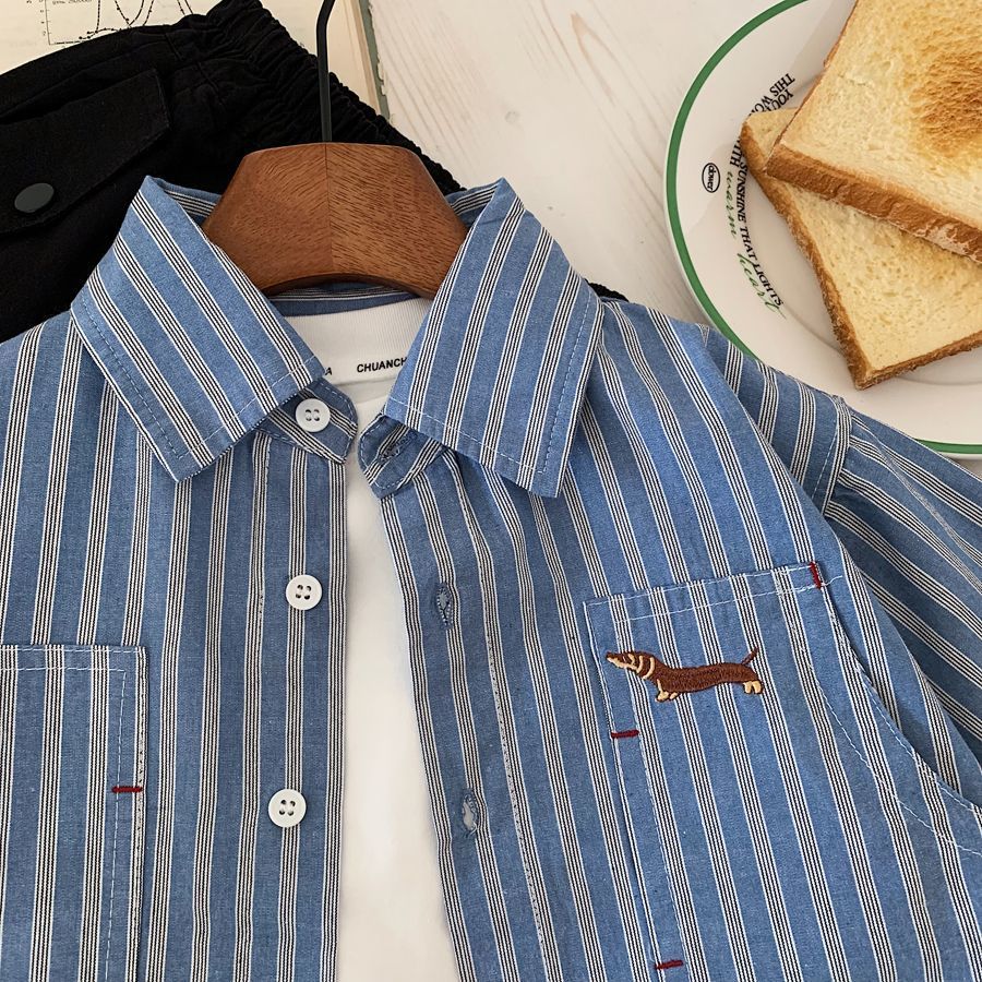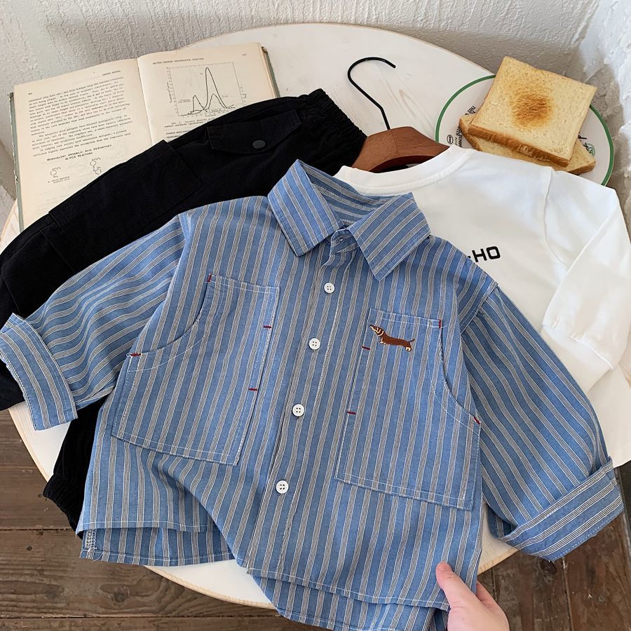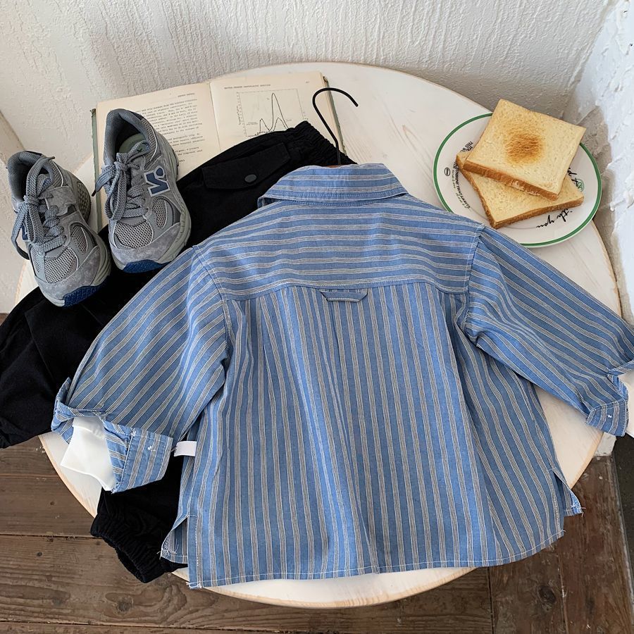 소년 스트라이프 셔츠 2025 가을 새 아기 캐주얼 잘 생긴 수 놓은 유치원 다목적 셔츠 카디건 유행스토어 가기