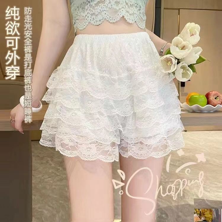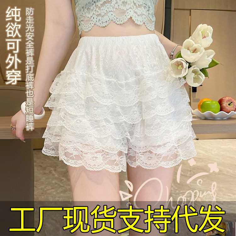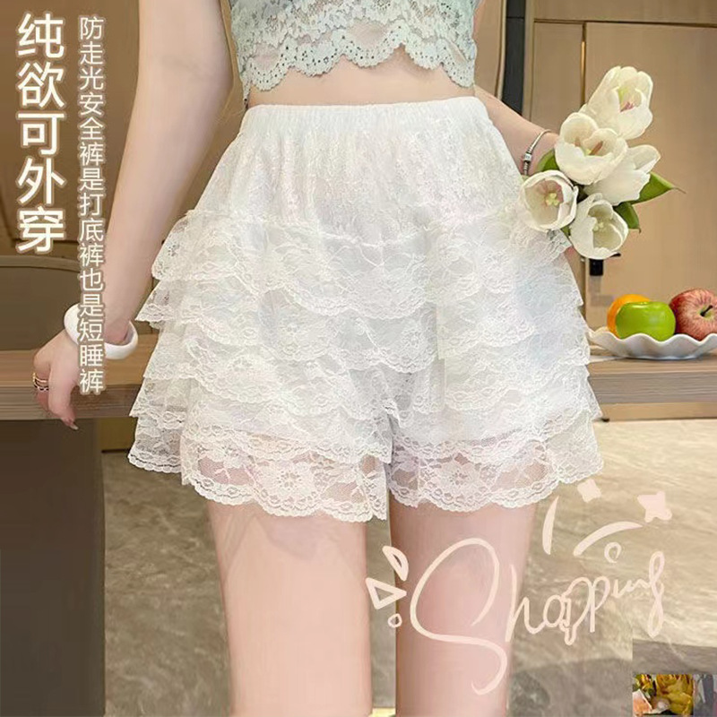 레깅스 여성용 안티 워킹 여름 얇은 컬링 아웃 웨어러블 반바지 호박 바지 안전 바지 레이스 안전 바지