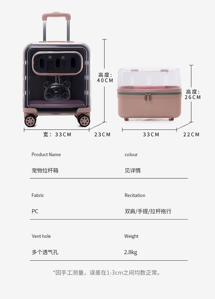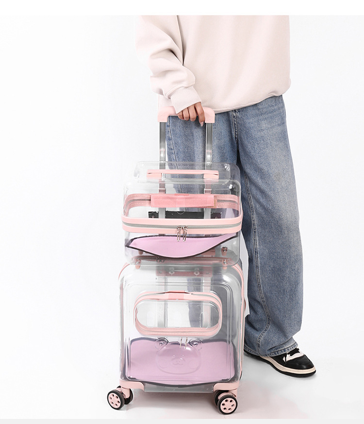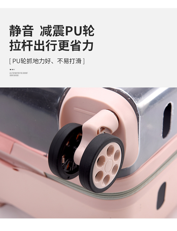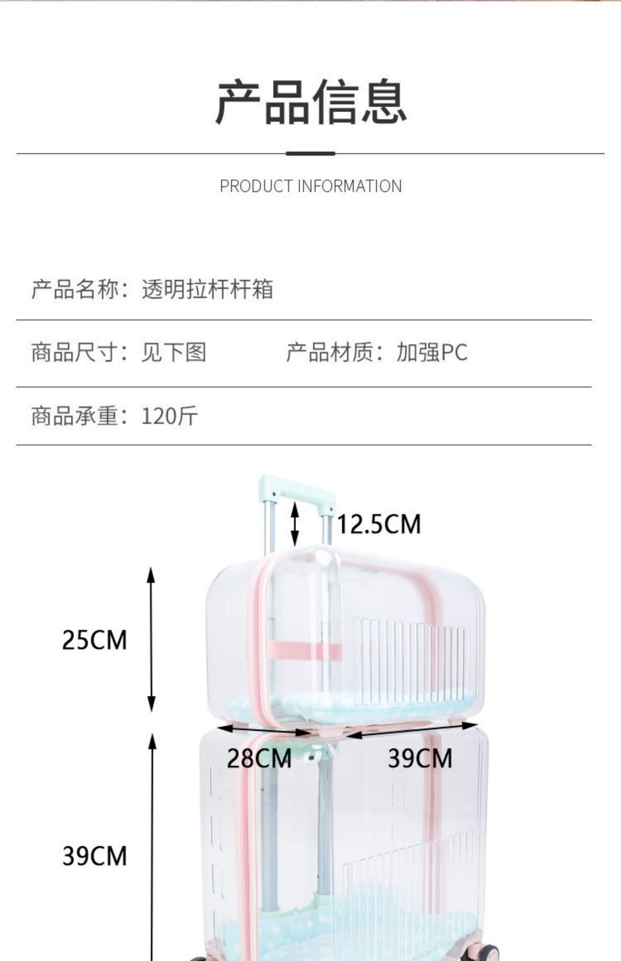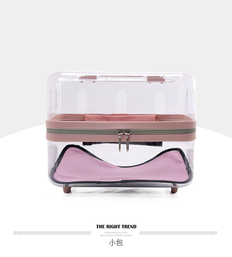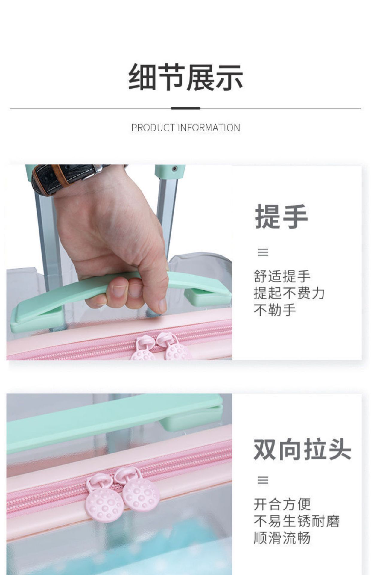 • 분홍색 투명 하부 트롤리 케이스 길이, 너비 및 높이 치수: 33*23*40cm