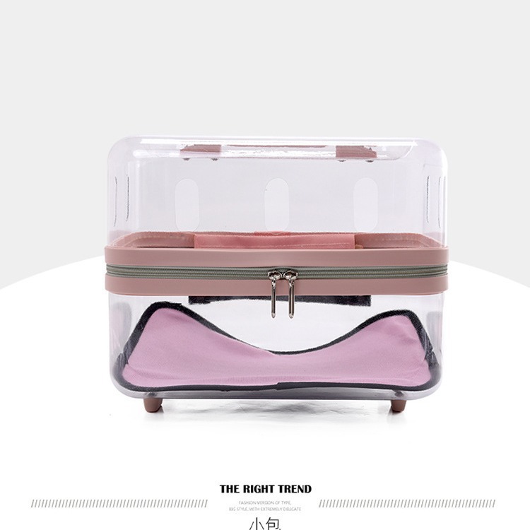 • 분홍색 투명 상부 여행 가방 길이, 너비 및 높이 치수: 33*22*26cm