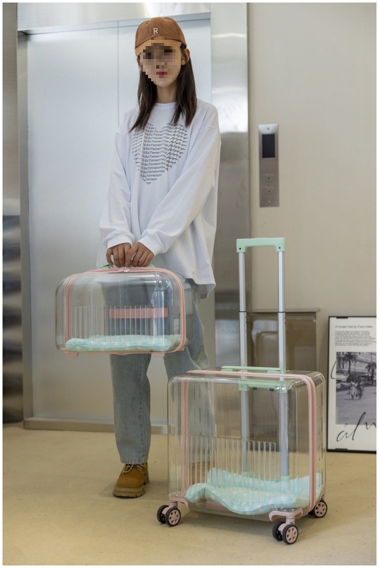 고양이 가방 나가는 트롤리 케이스 휴대용 공간 캡슐 수하물 가방 개 나가는 가방 대형 핸드백 투명 어깨 고양이 가방스토어 가기