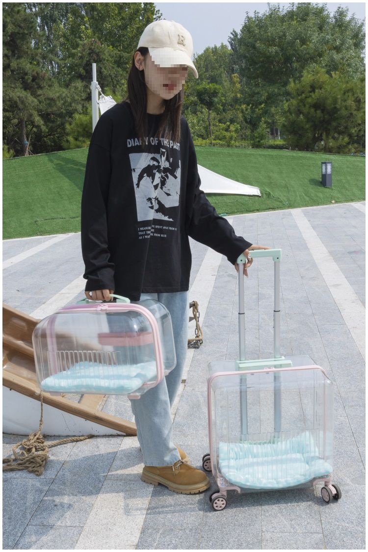 고양이 가방 나가는 트롤리 케이스 휴대용 공간 캡슐 수하물 가방 개 나가는 가방 대형 핸드백 투명 어깨 고양이 가방
