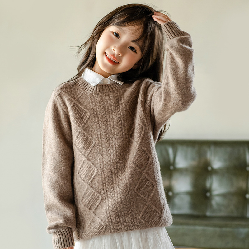 두꺼운 어린이 100 순수 양모 스웨터 소년과 소녀의 캐시미어 스웨터 크루 넥 중형 및 대형 아동복 가을 겨울 스웨터