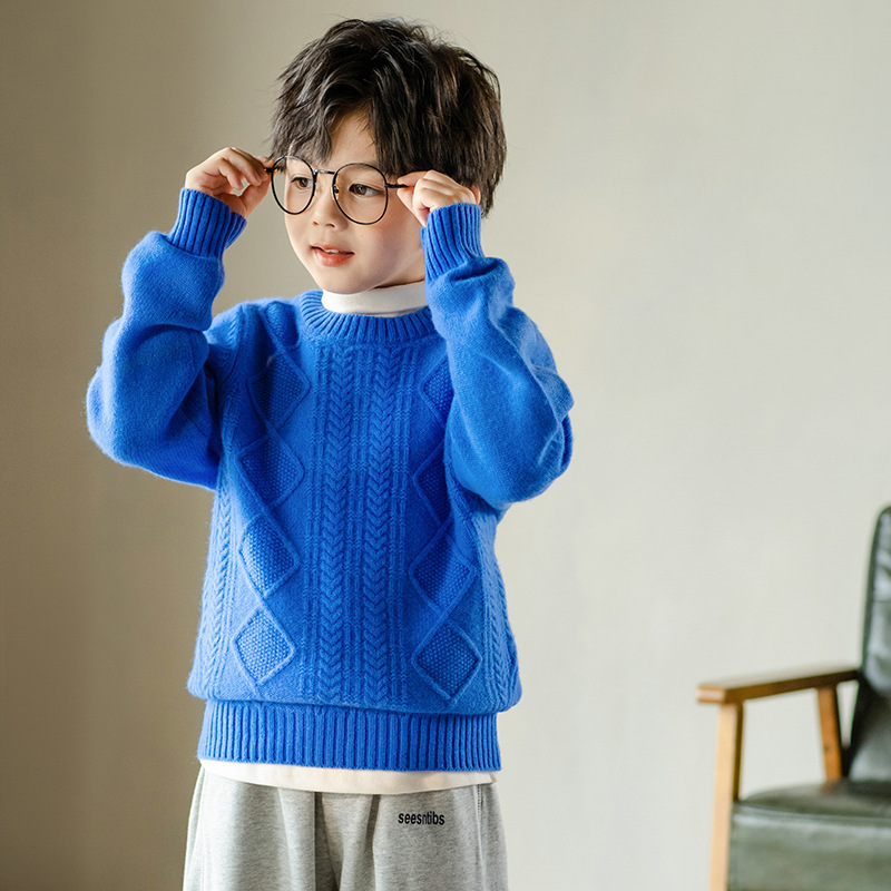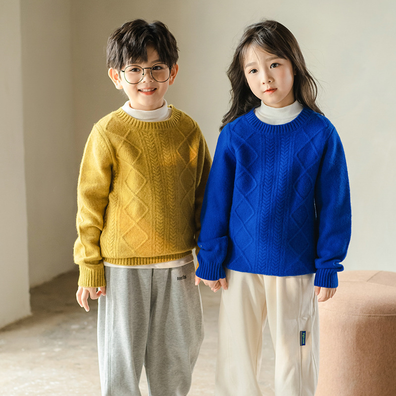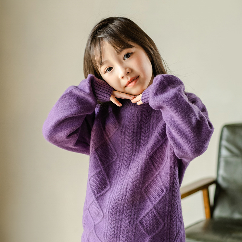 두꺼운 어린이 100 순수 양모 스웨터 소년과 소녀의 캐시미어 스웨터 크루 넥 중형 및 대형 아동복 가을 겨울 스웨터스토어 가기
