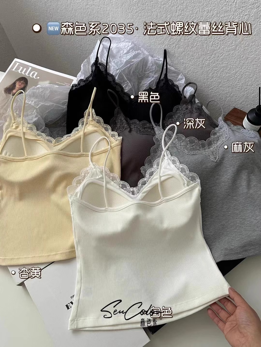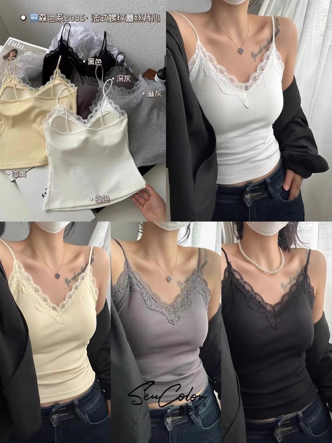2035 이른 봄 새로운 모리 레이스 편안한 비 마킹 카미 솔 V 넥 얇은 어깨 스트랩 슬림 핏 푸시 업스토어 가기