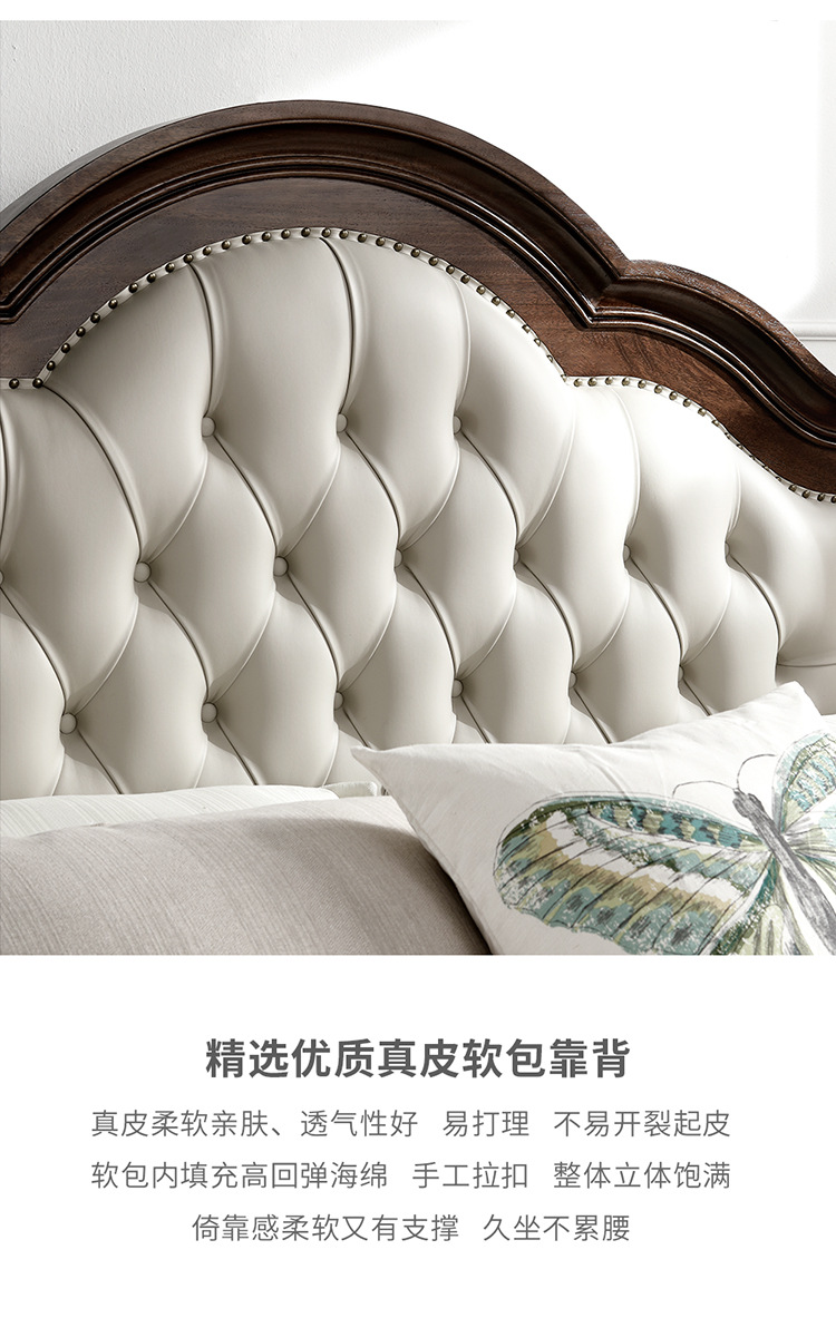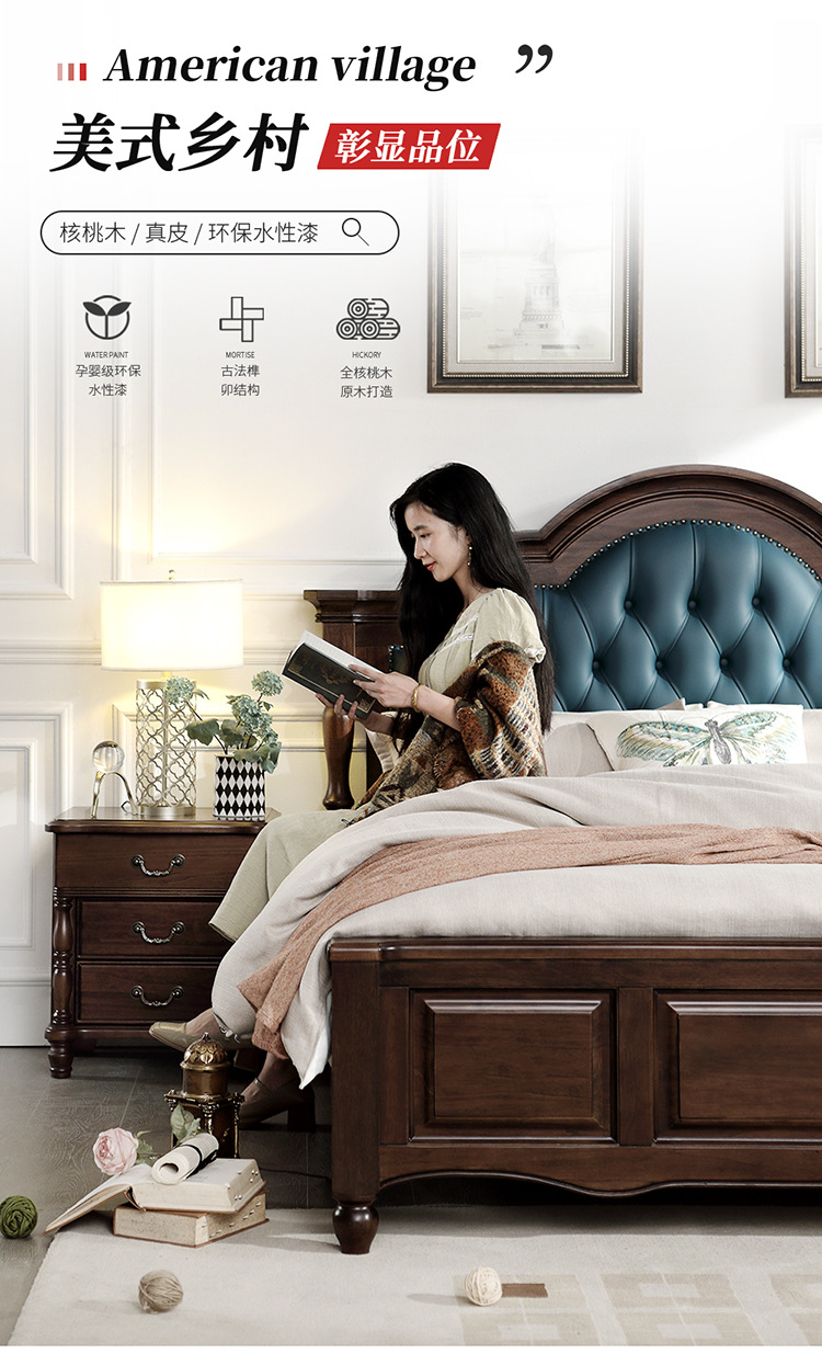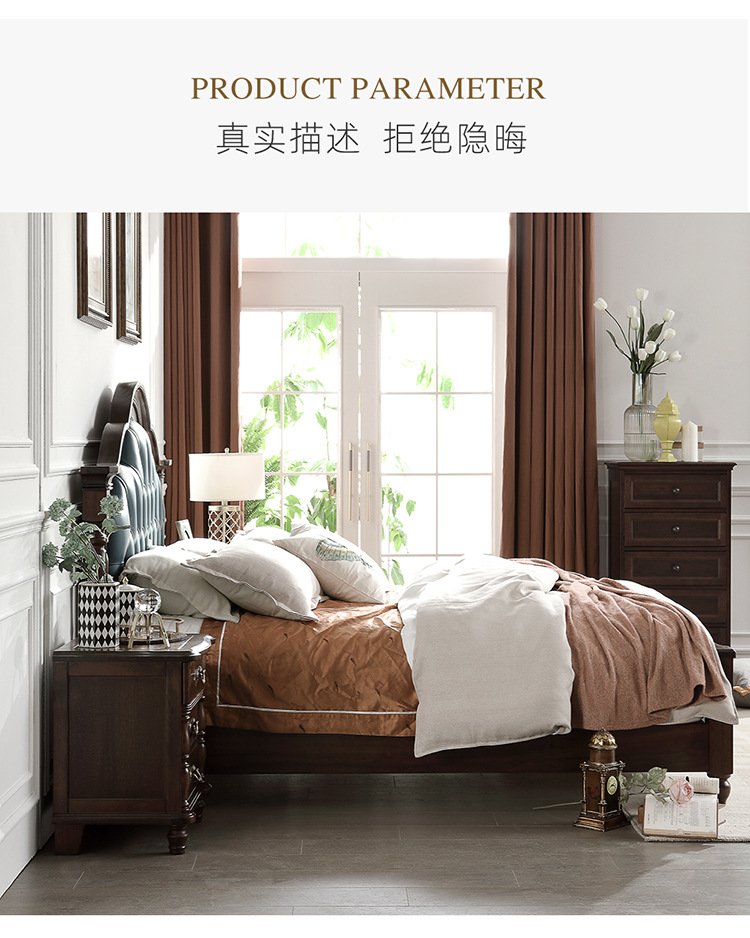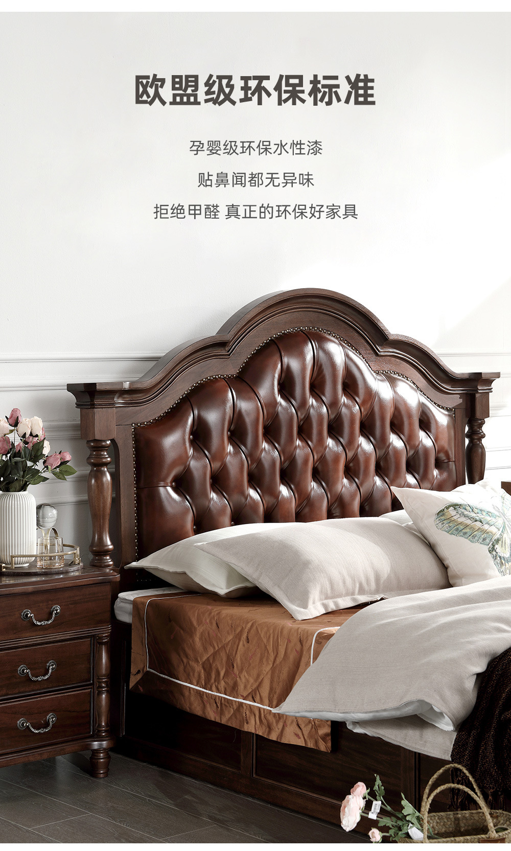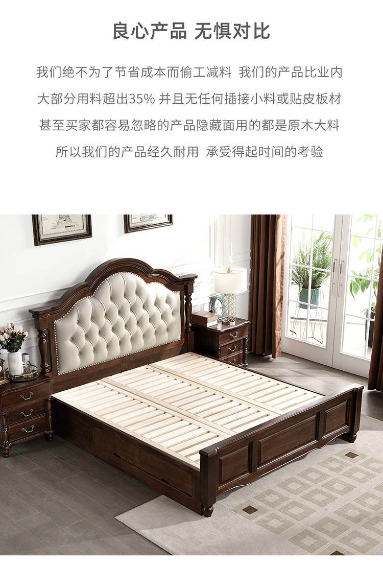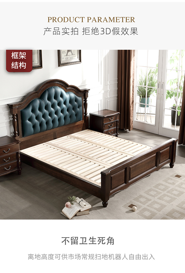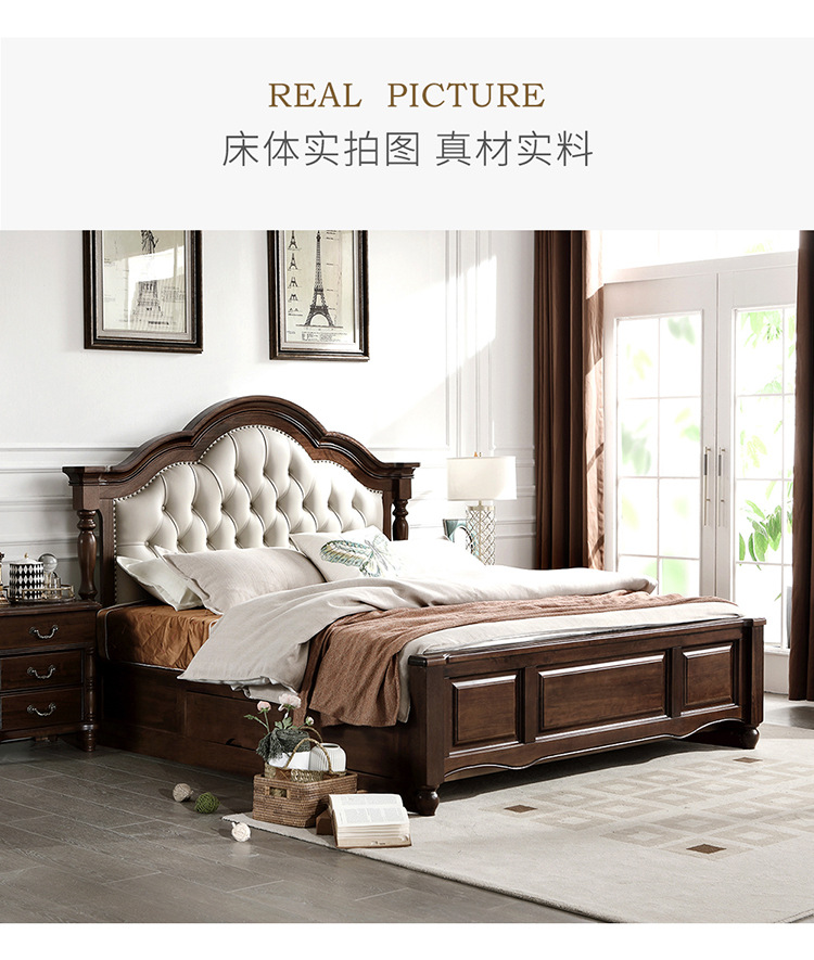 미국의 단단한 나무 침대 마스터 침실 높은 상자 저장 가죽 부드러운 가방 복고풍 1.8 미터 더블 웨딩 침대 200 × 220 큰 침대스토어 가기