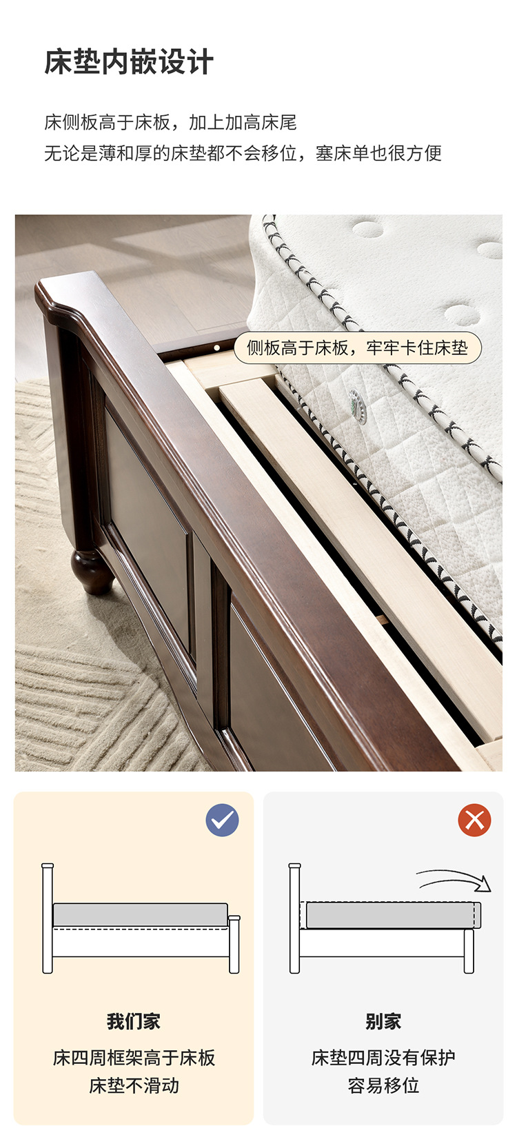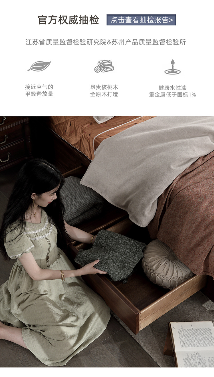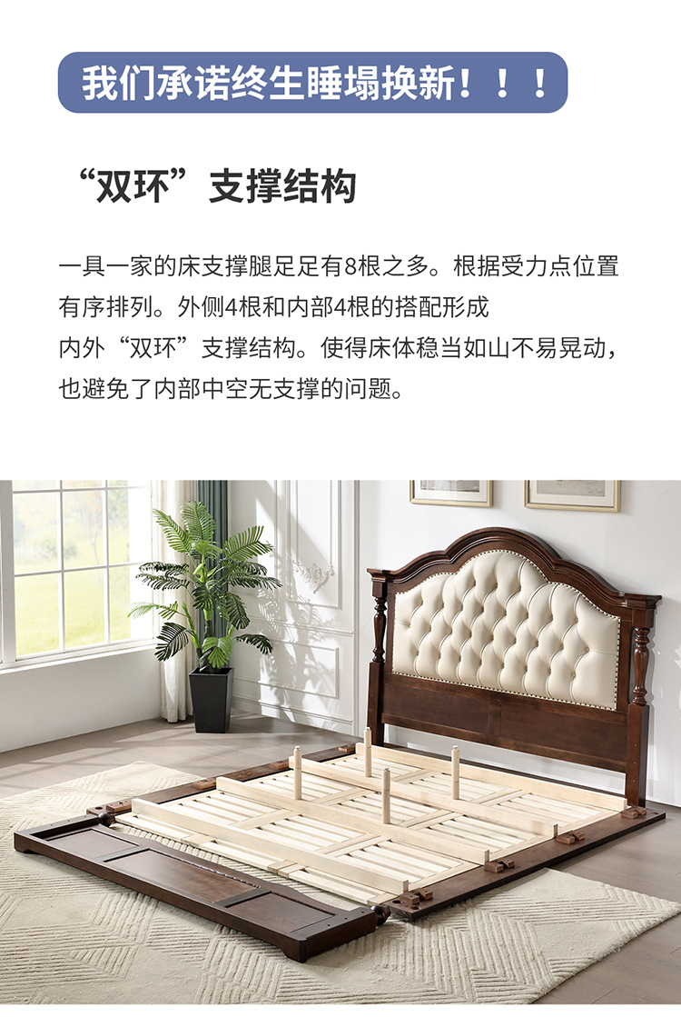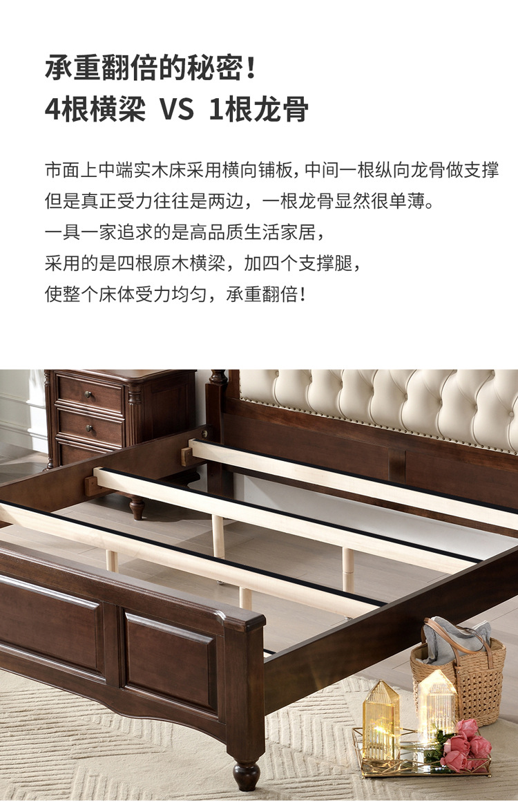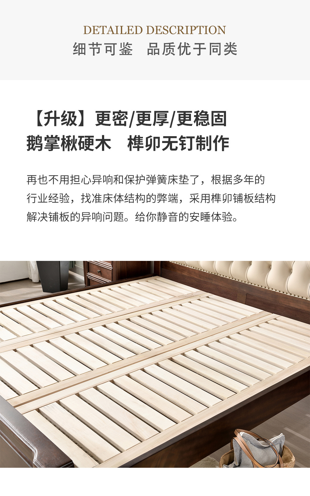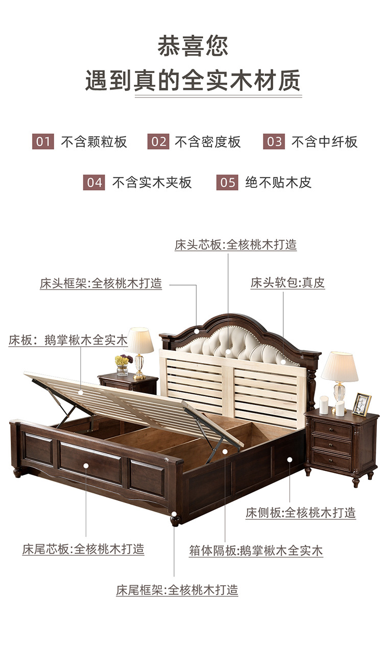 미국의 단단한 나무 침대 마스터 침실 높은 상자 저장 가죽 부드러운 가방 복고풍 1.8 미터 더블 웨딩 침대 200 × 220 큰 침대스토어 가기