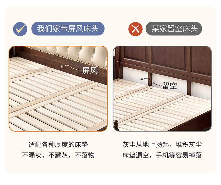 • 브라운 가죽 소프트 패키지 원목 침대(침대 옆 탁자 제외) + 박스 프레임 구조