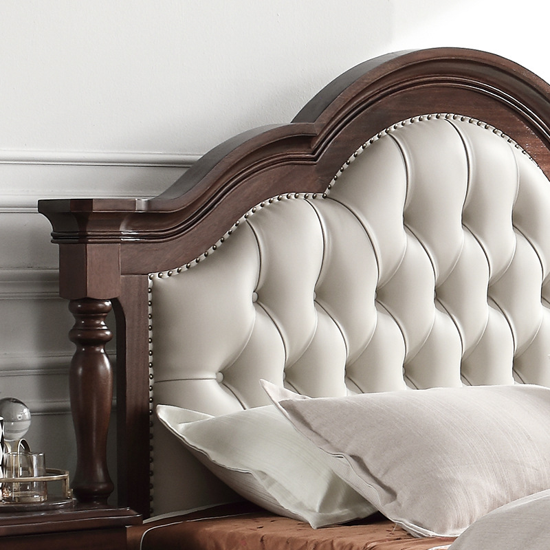 • 브라운 가죽 소프트 패키지 원목 침대(침대 옆 탁자 제외) + 프레임 구조