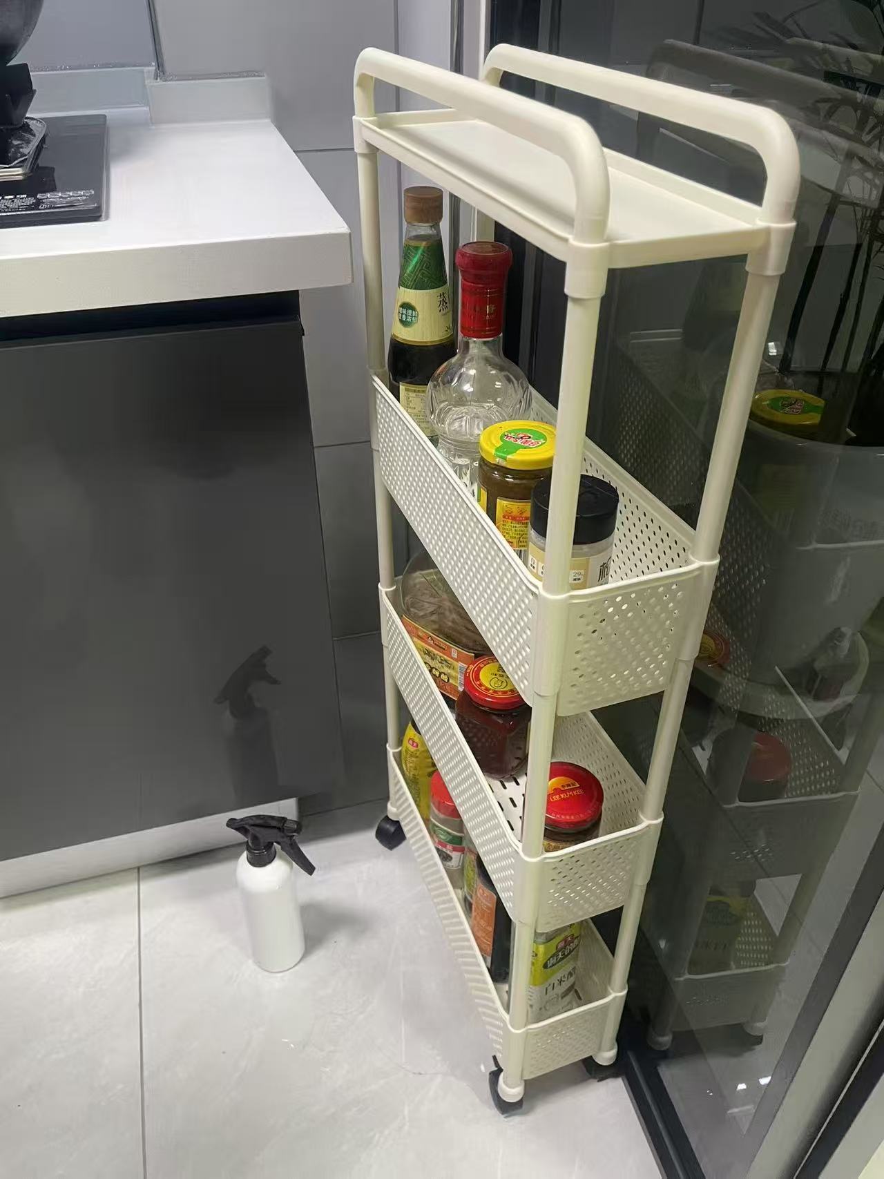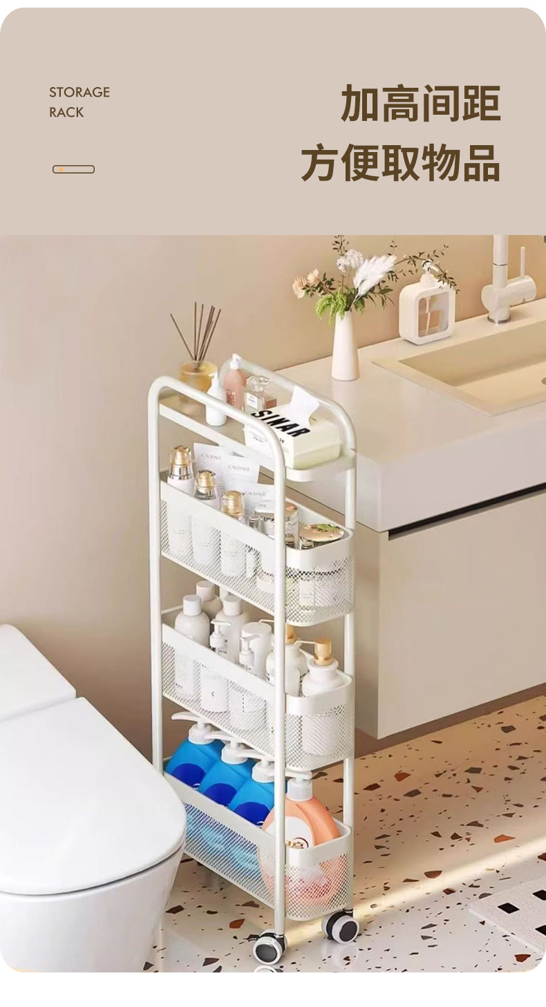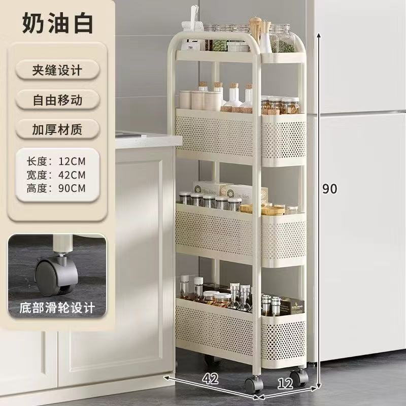 다층 사이드 슬롯 스토리지 랙 발코니 침실 주방 스낵 카트 이동식 스토리지 랙 슬롯 스토리지 랙