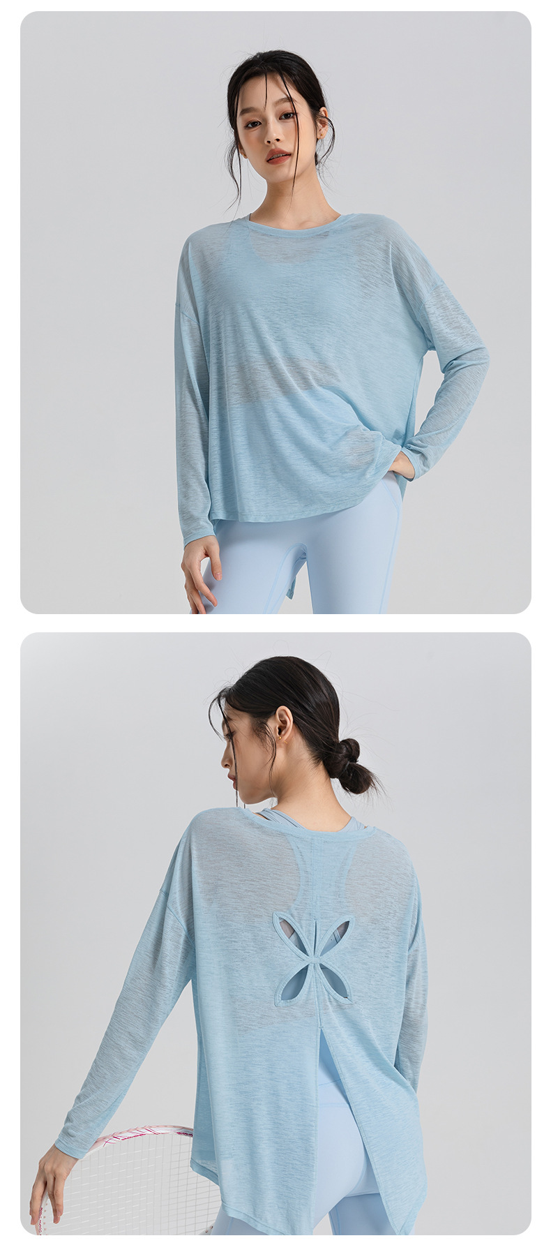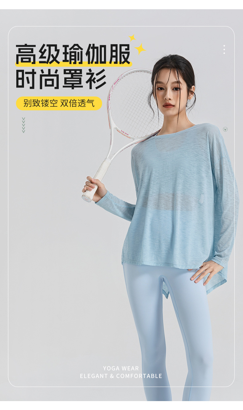 여성을 위한 새로운 통기성 요가 커버업, 슬림 스포츠 피트니스 탑, 가벼운 요가복, 루즈한 긴팔 도매