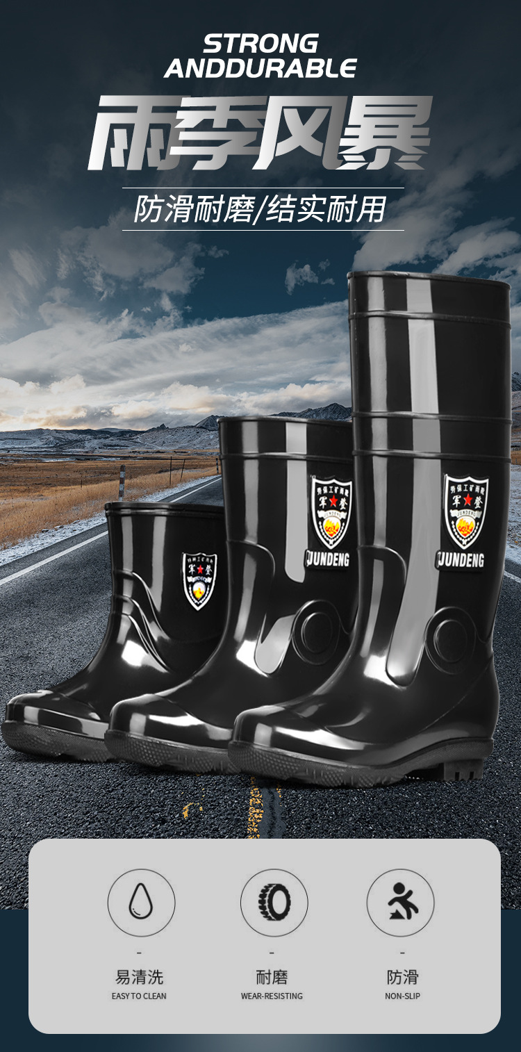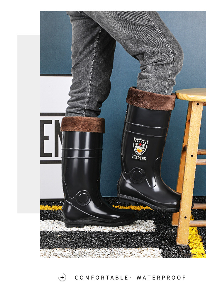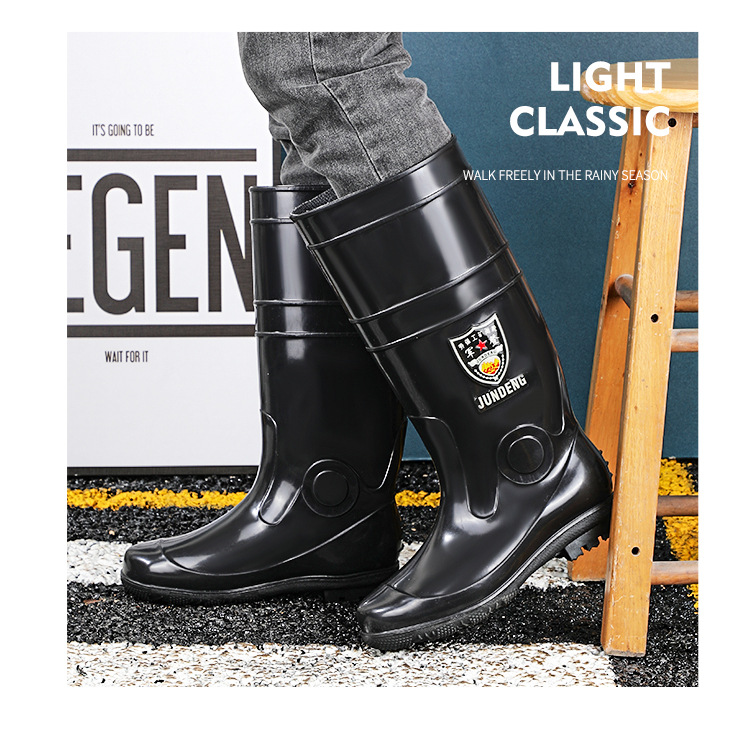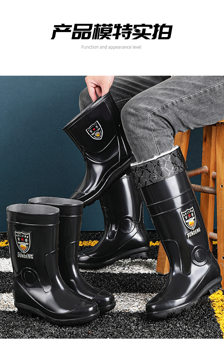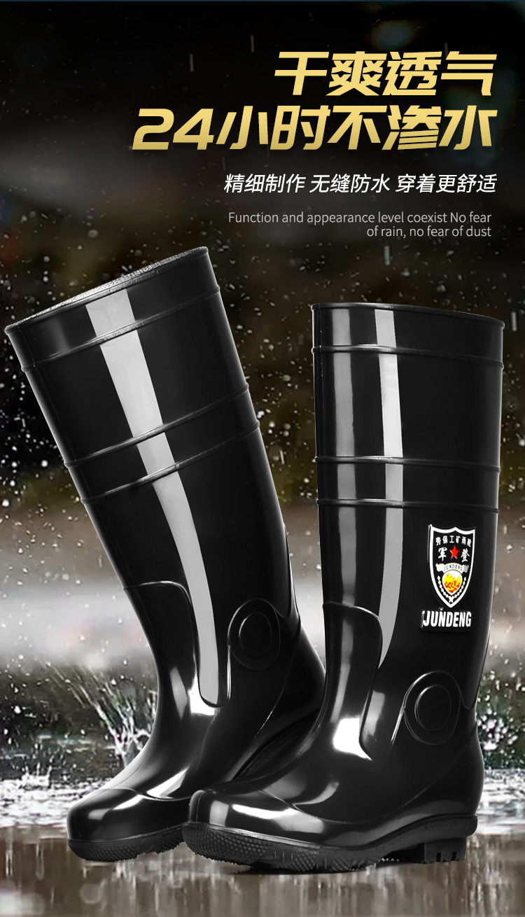 Jundeng 두꺼운 높은 배럴 블랙 레인 부츠 장화 광산 부츠 노동 보호 고무 신발 주방 물 신발 미끄럼 방지 고무 바닥 물