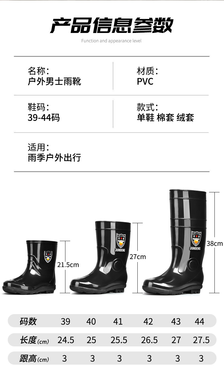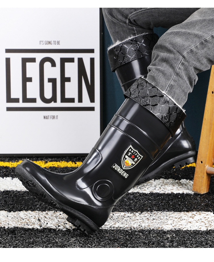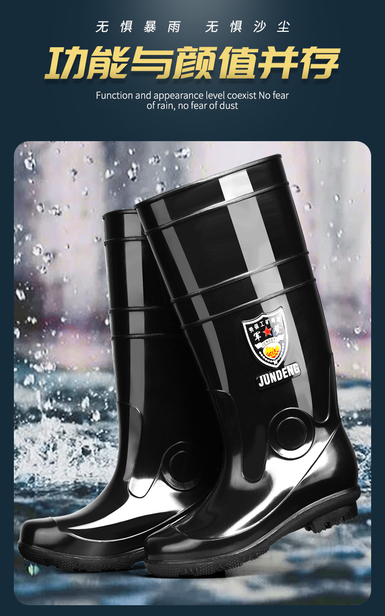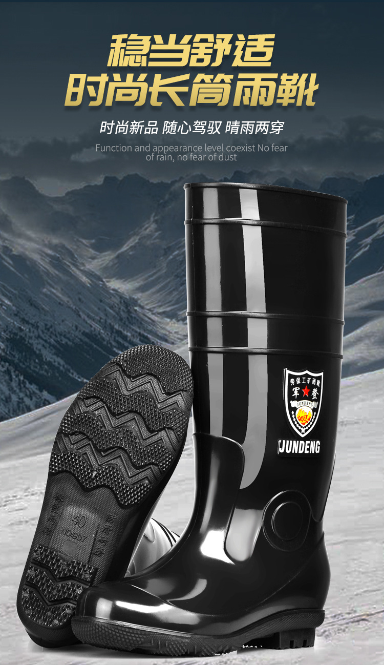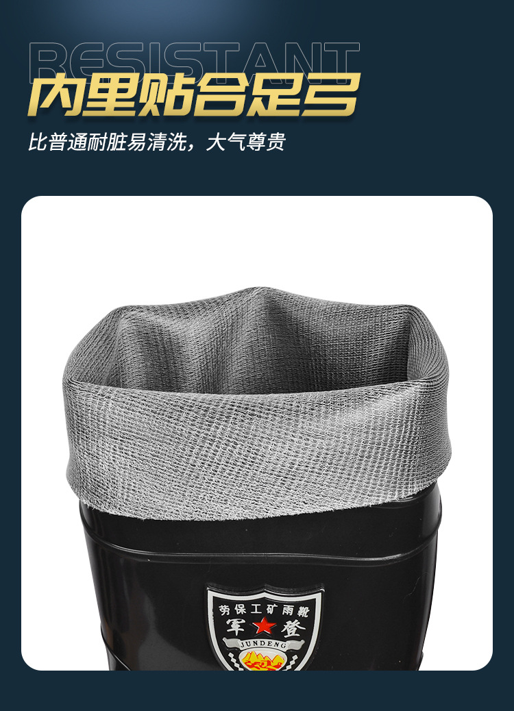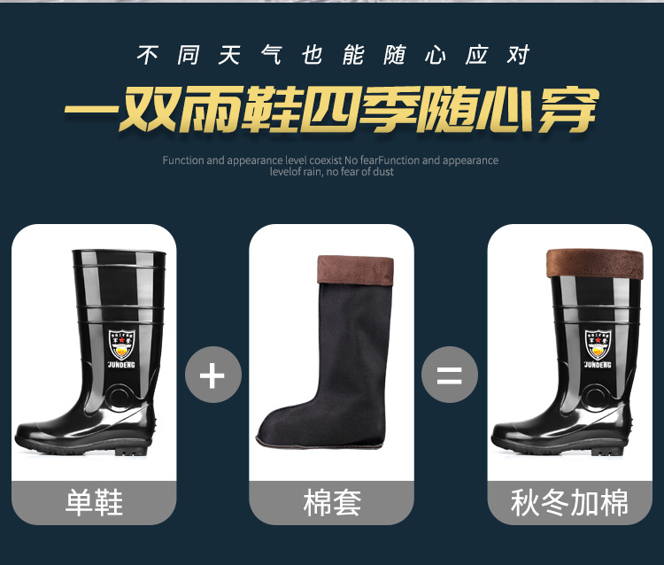 Jundeng 두꺼운 높은 배럴 블랙 레인 부츠 장화 광산 부츠 노동 보호 고무 신발 주방 물 신발 미끄럼 방지 고무 바닥 물