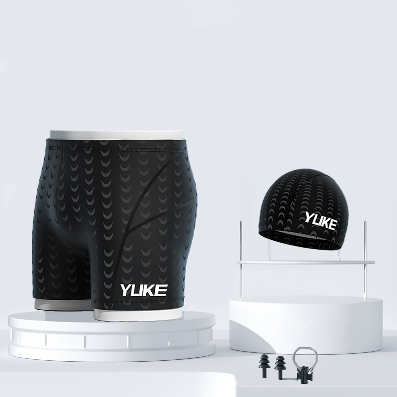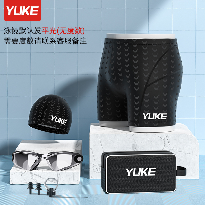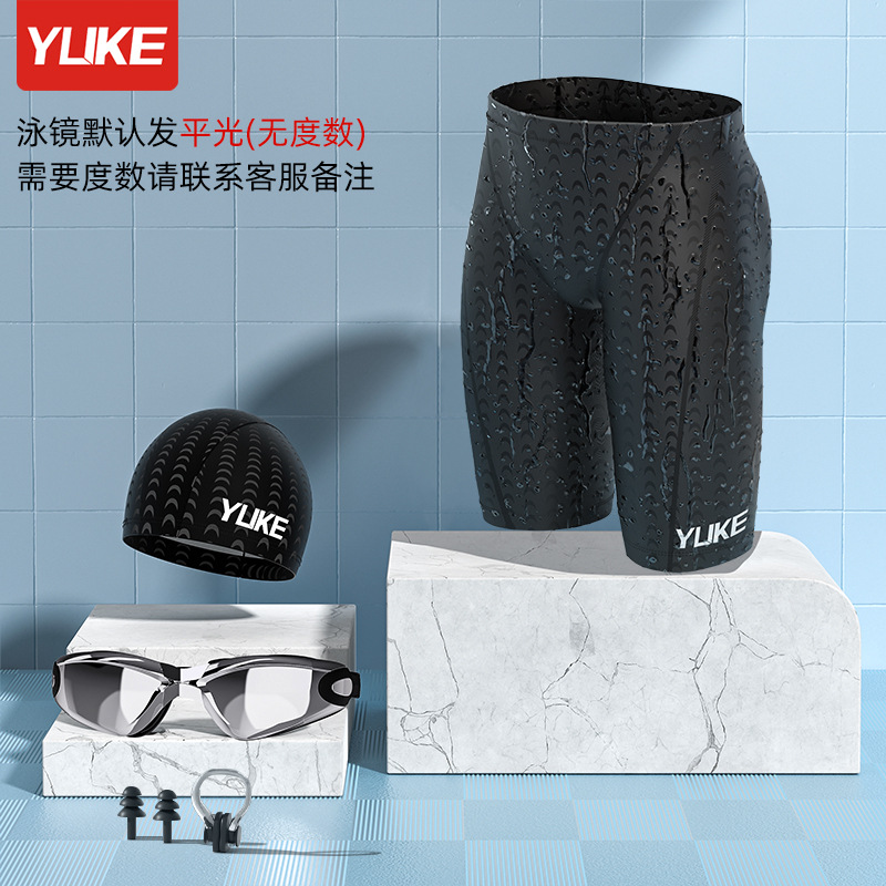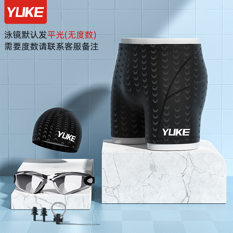 유케 수영 트렁크 남자 5 점 상어 피부 방수 빠른 건조 온천 플러스 사이즈 수영 모자 수영 고글 남자 수영 세트 장비