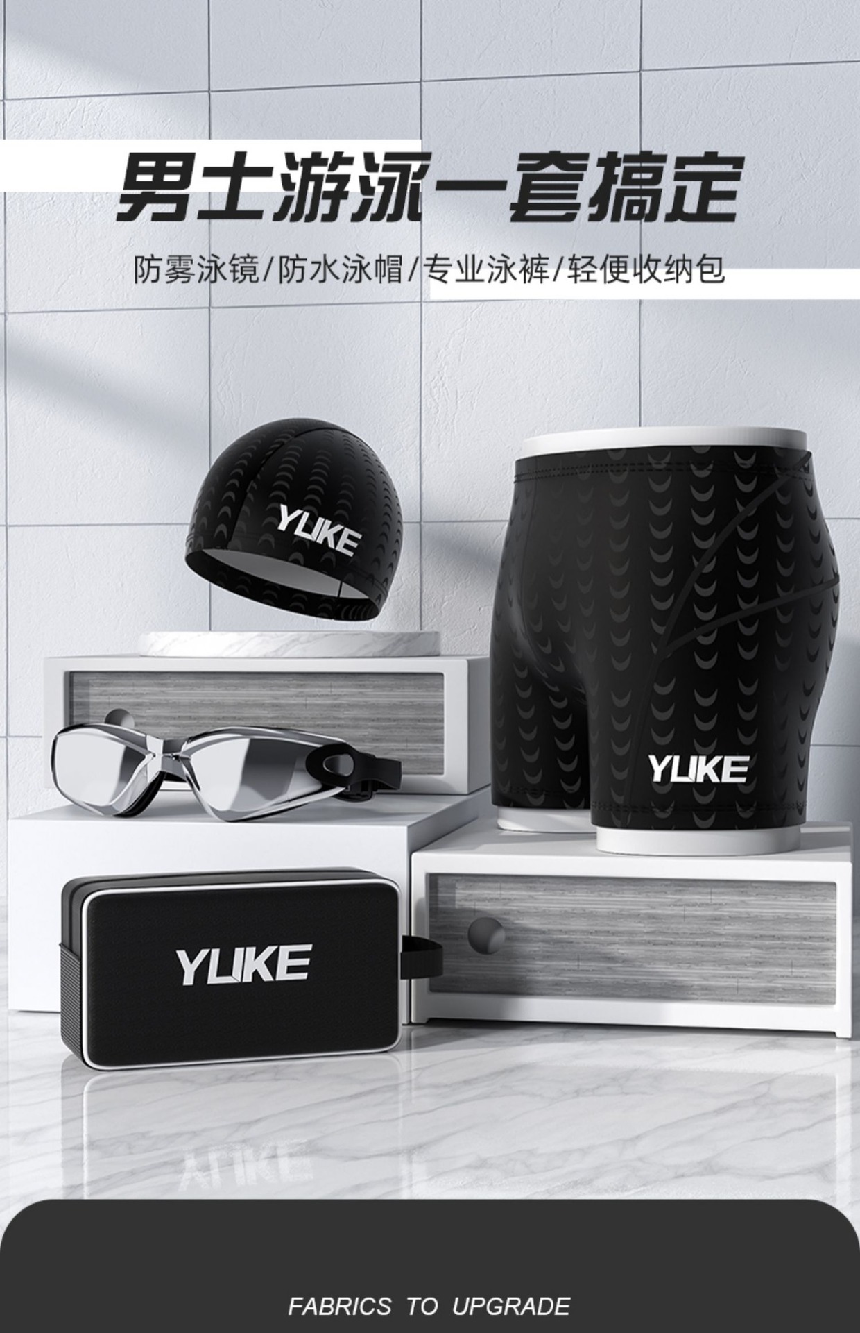 유케 수영 트렁크 남자 5 점 상어 피부 방수 빠른 건조 온천 플러스 사이즈 수영 모자 수영 고글 남자 수영 세트 장비스토어 가기
