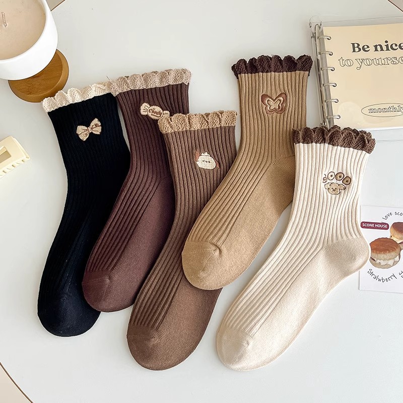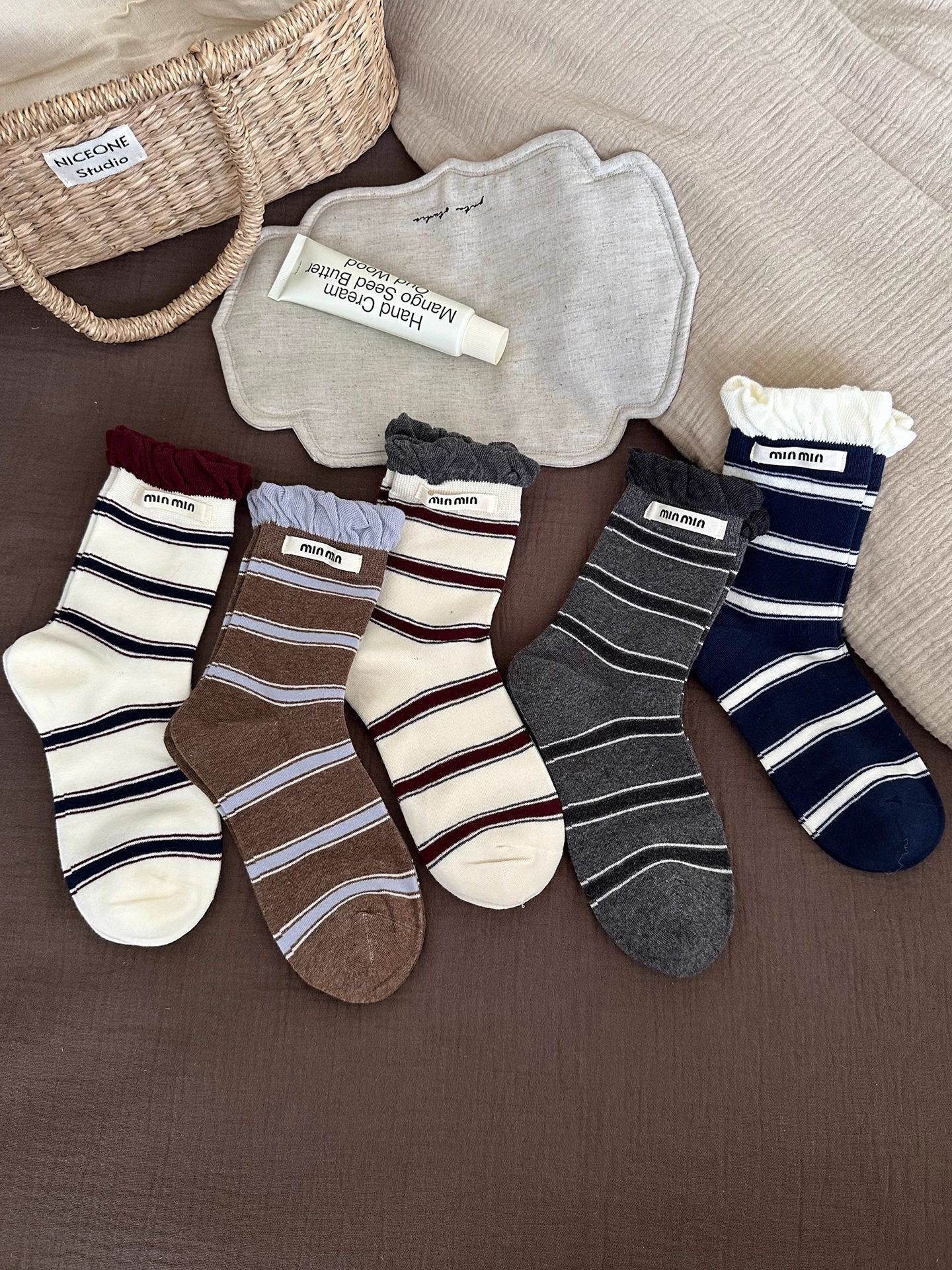 • 곰팡이 가장자리가 있는 밀키 화이트 색상의 빙빙 양말