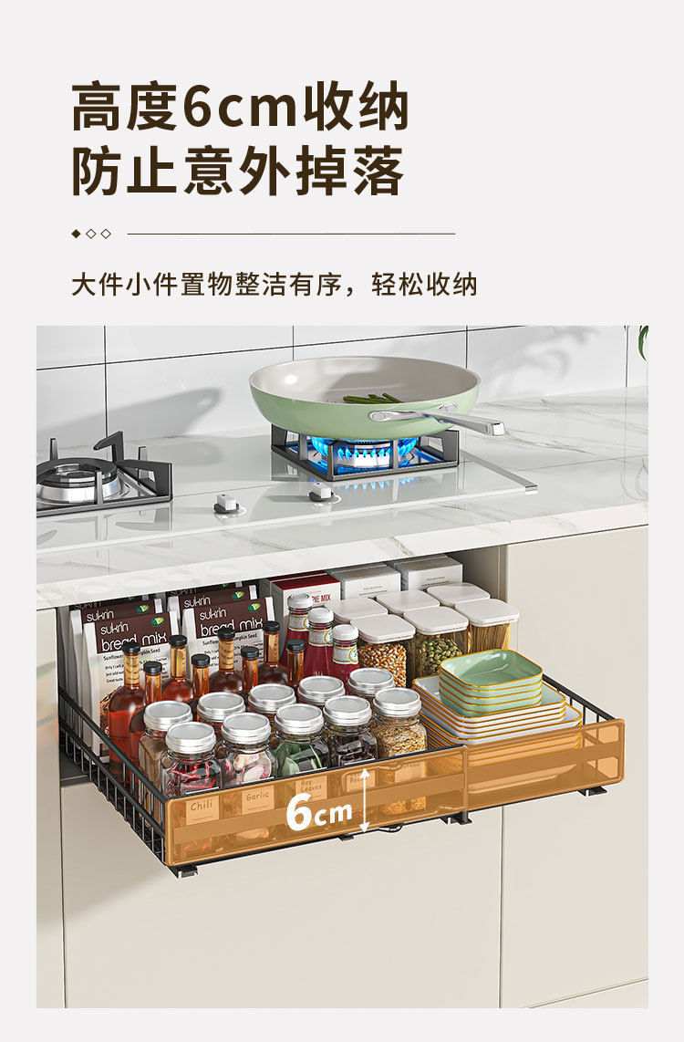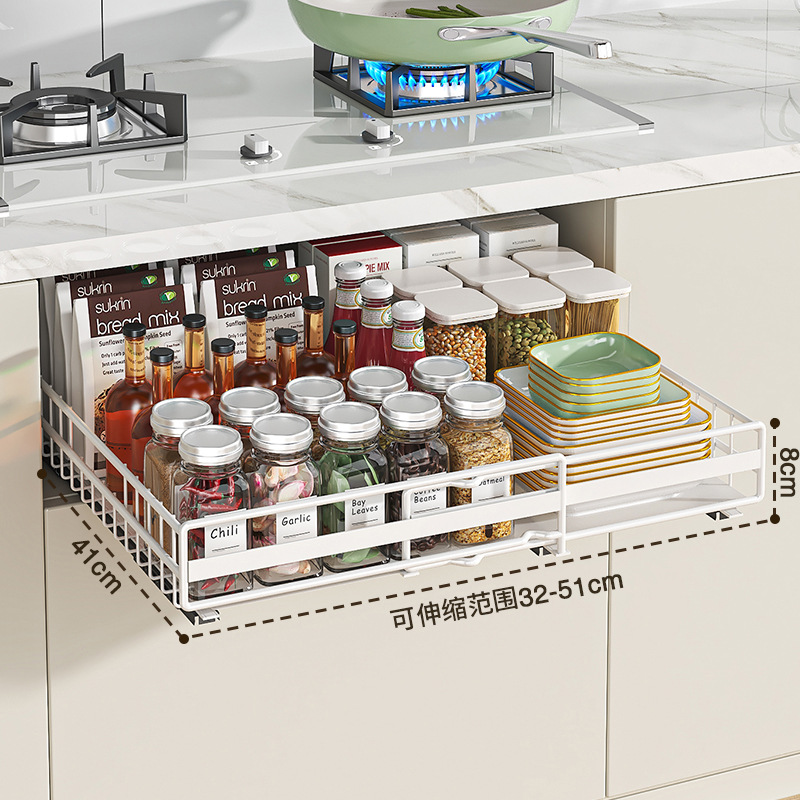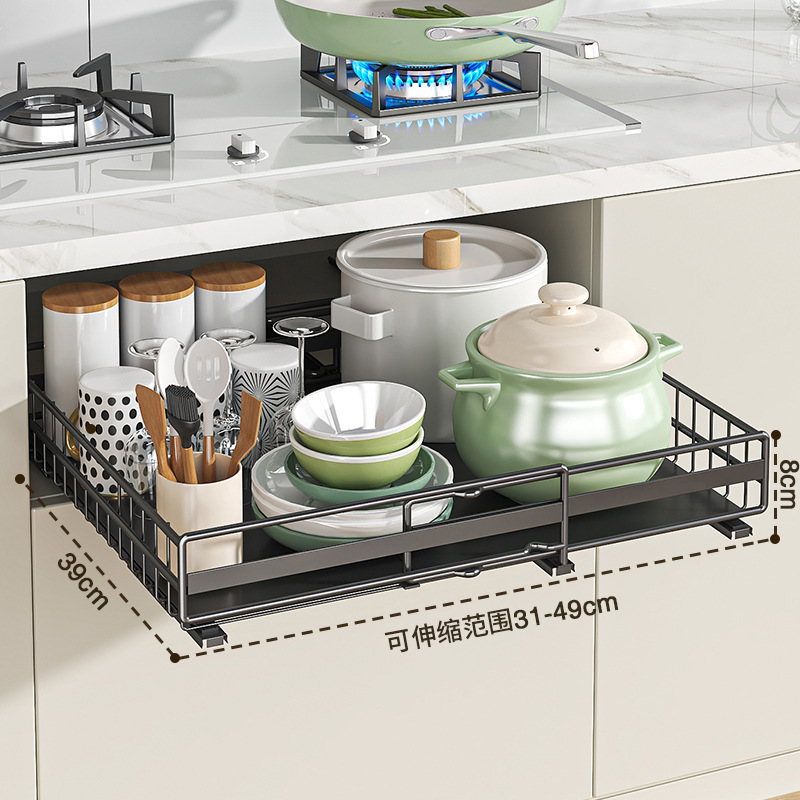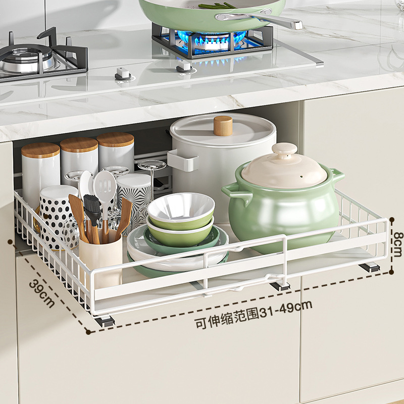 펀치없는 개폐식 캐비닛 풀아웃 바구니 풀아웃 스토리지 랙 더 낮은 싱크 서랍 그릇 바구니 주방 스토리지 랙 아티팩트