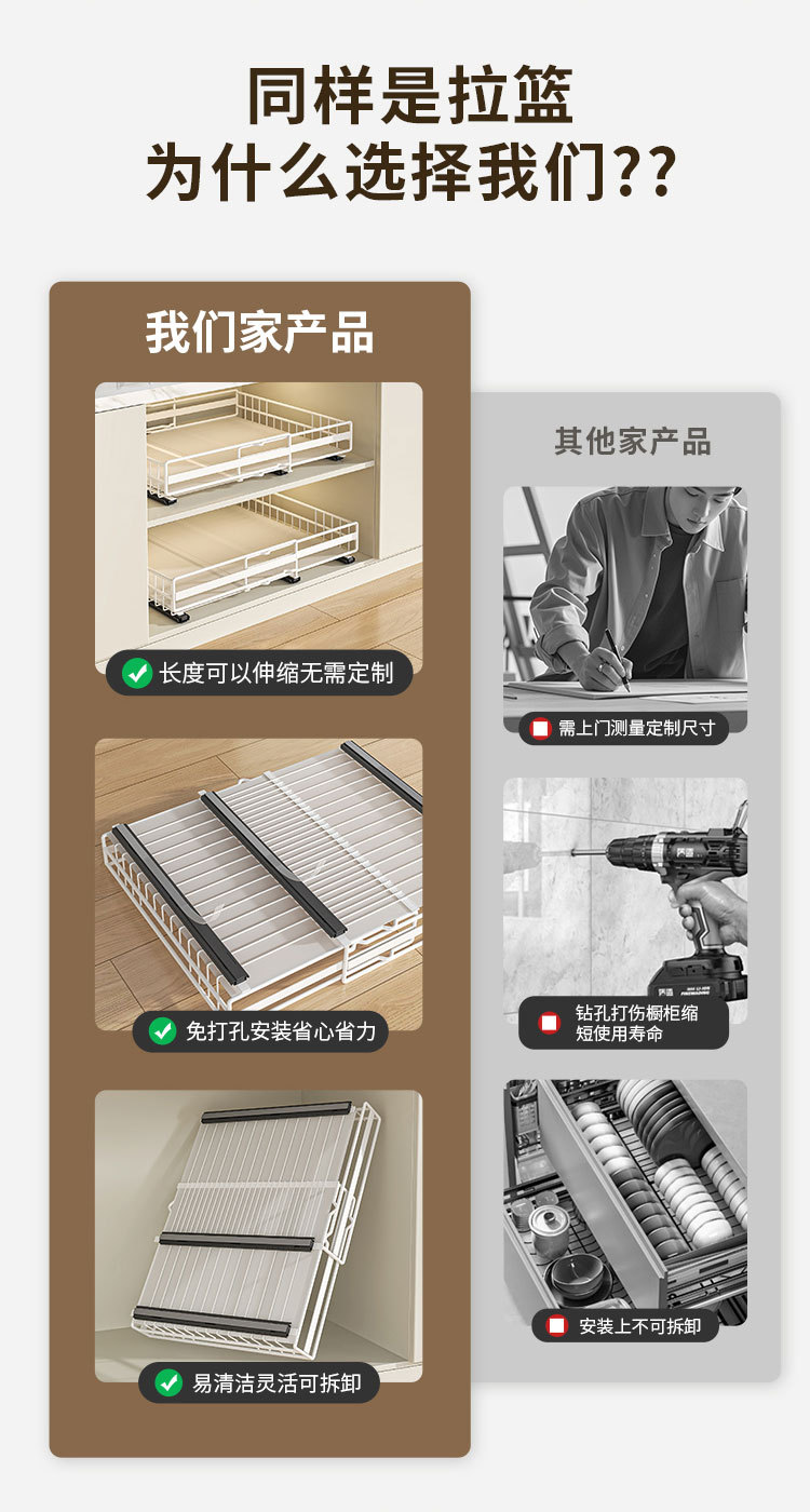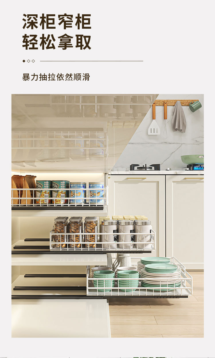 • 대형 가이드 레일 텔레스코픽 수납 바구니(라인 용어) * 흰색