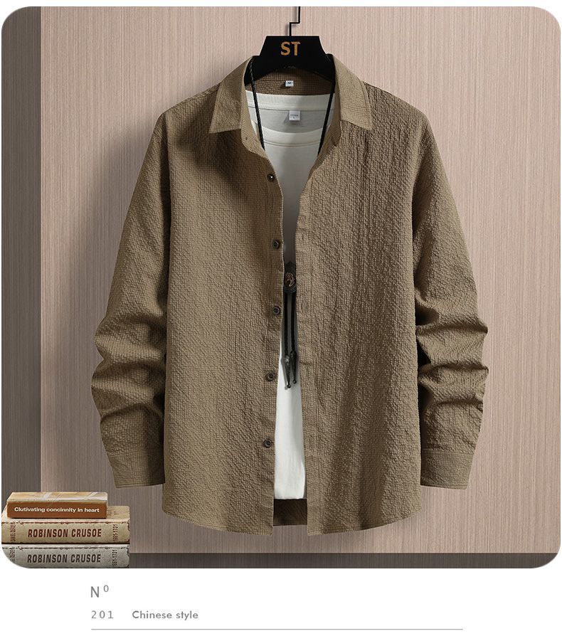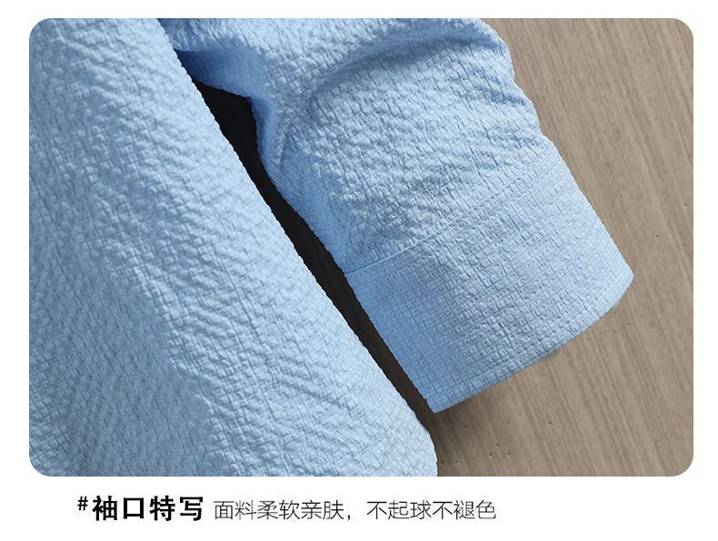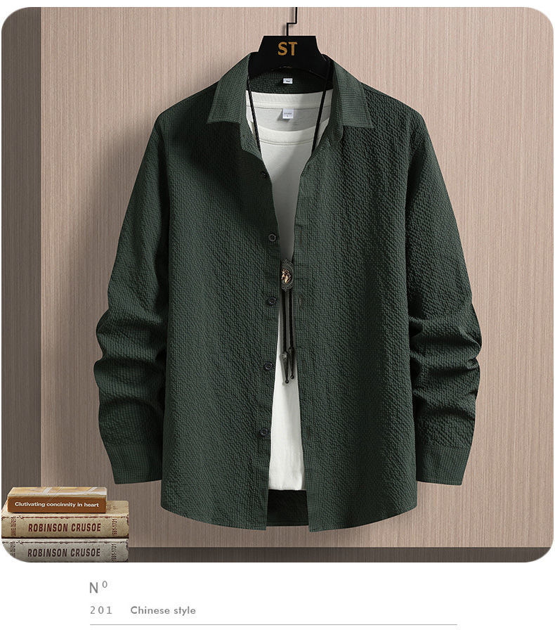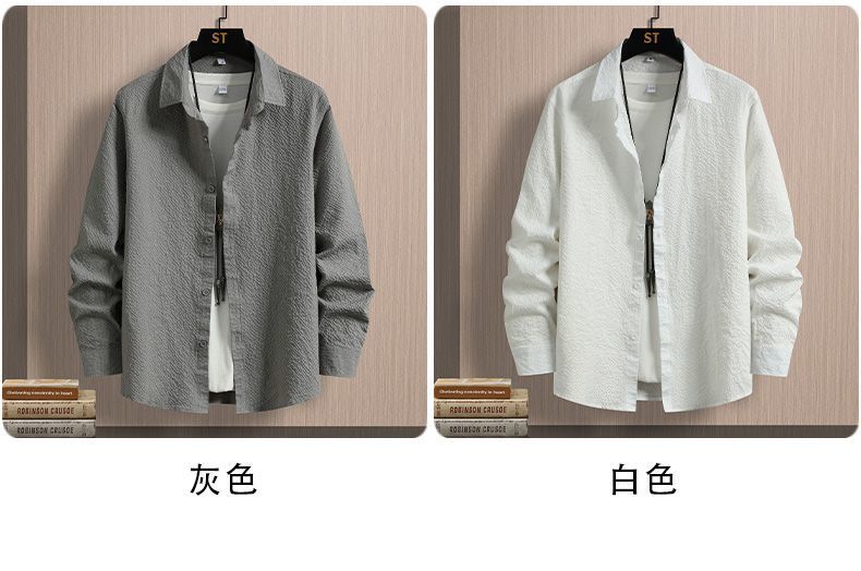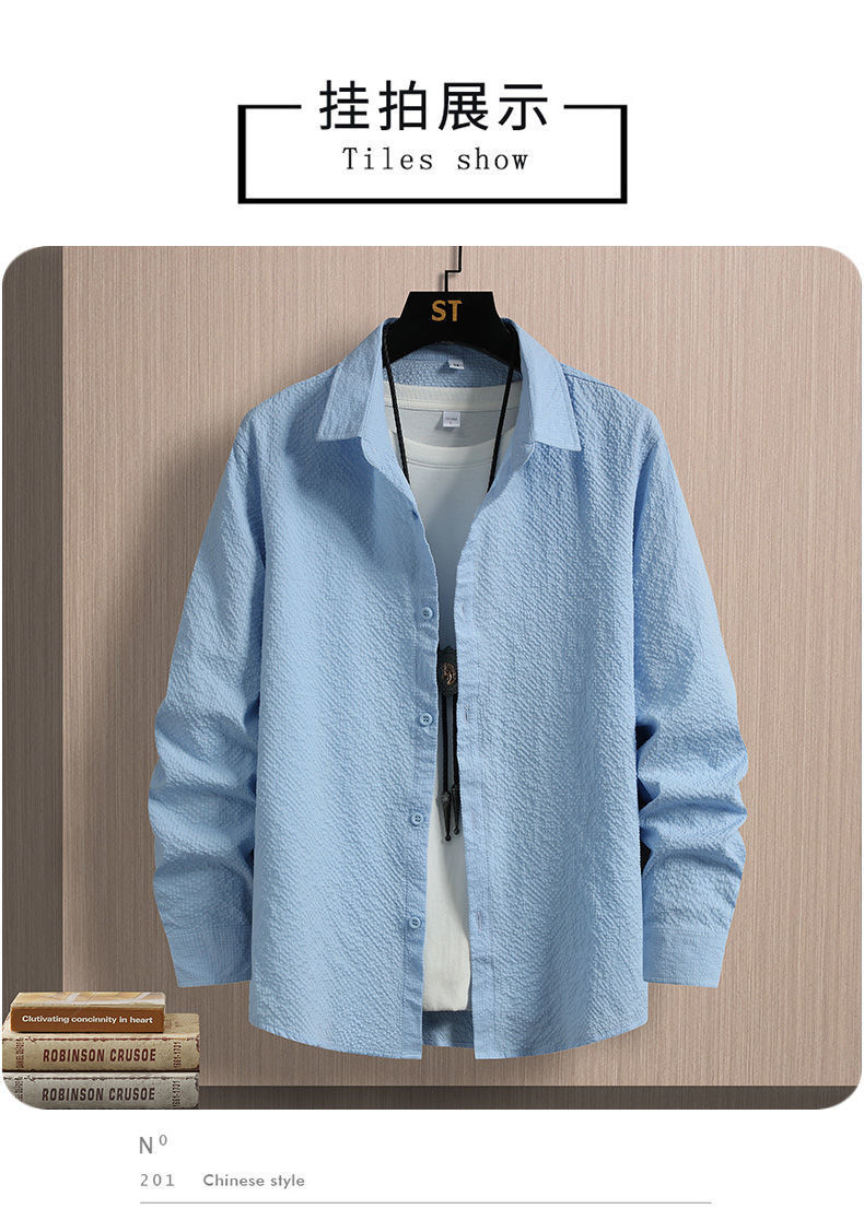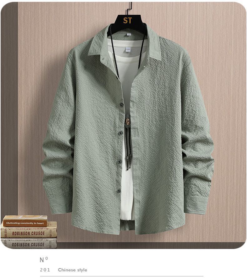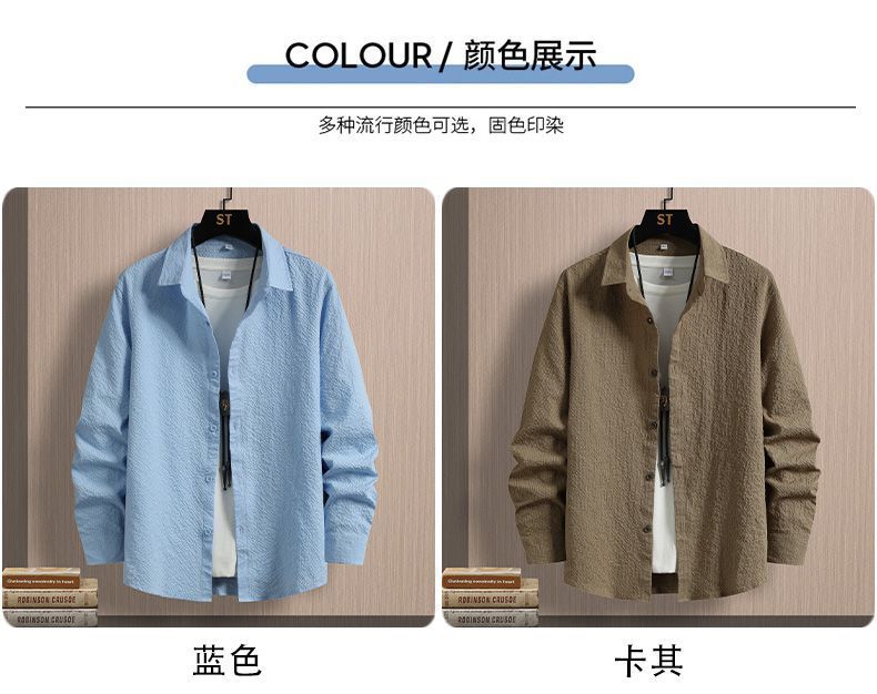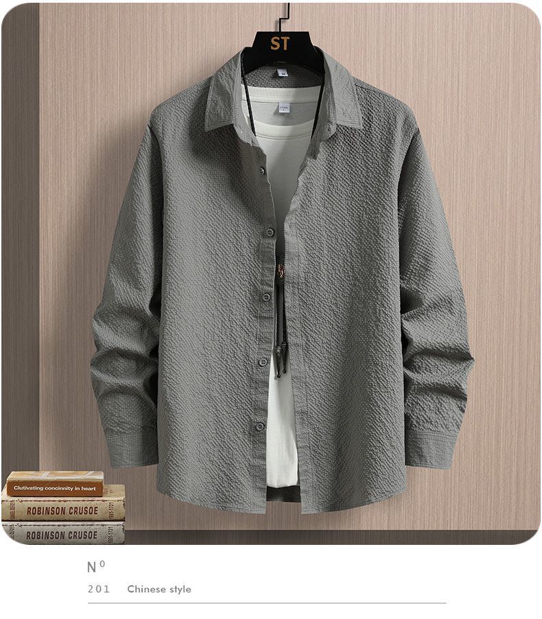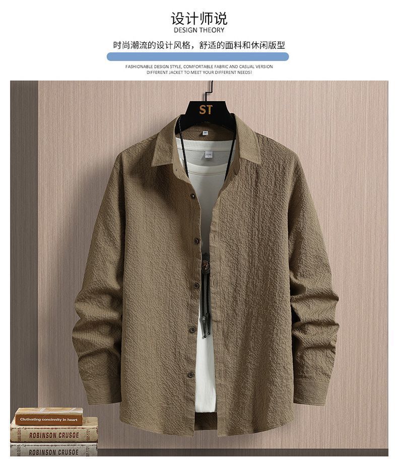 컬러 가을 새로운 seersucker 긴팔 셔츠 남성 셔츠 느슨한 캐주얼 얇은 코트스토어 가기