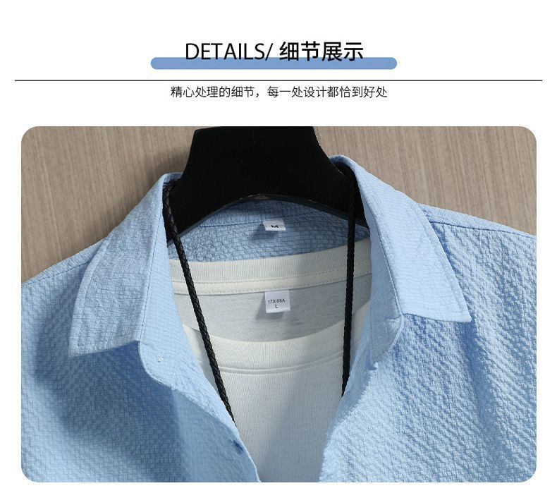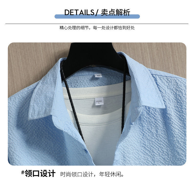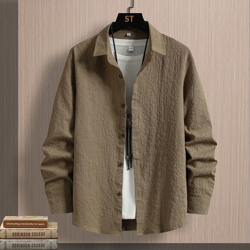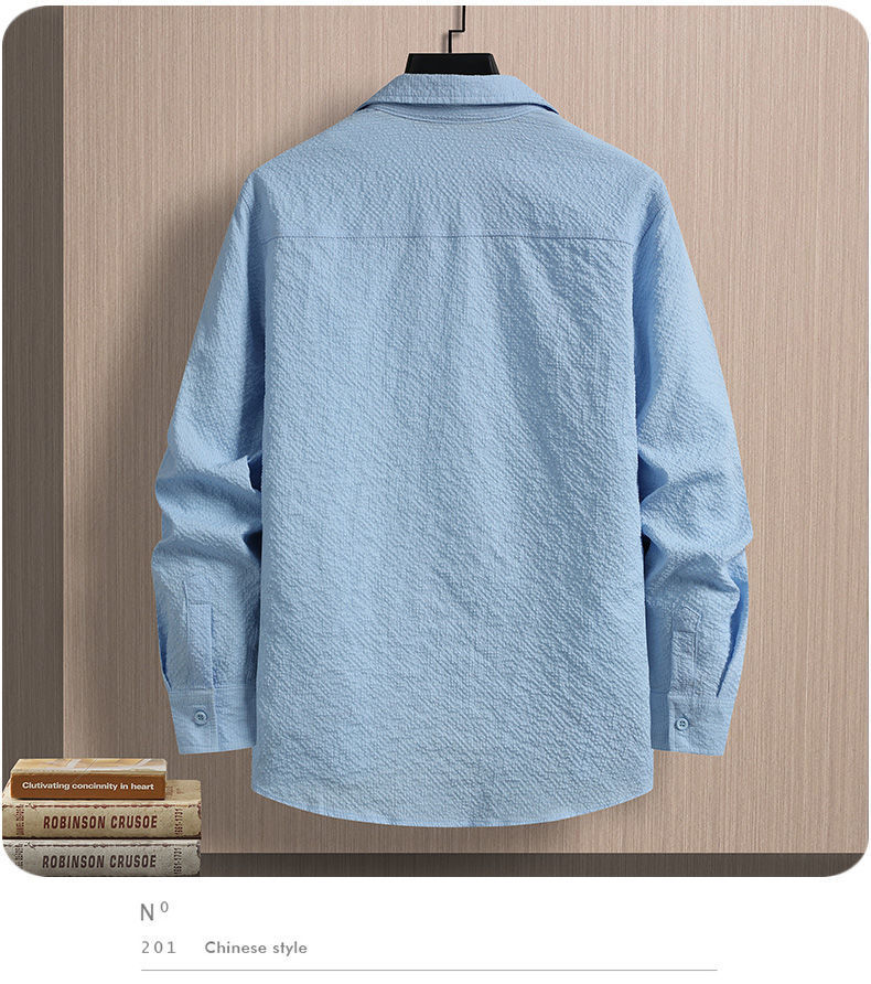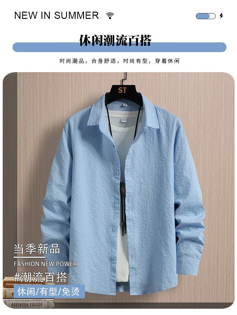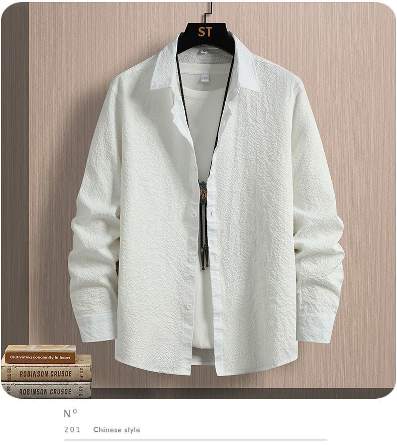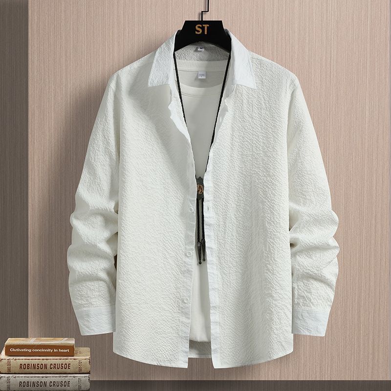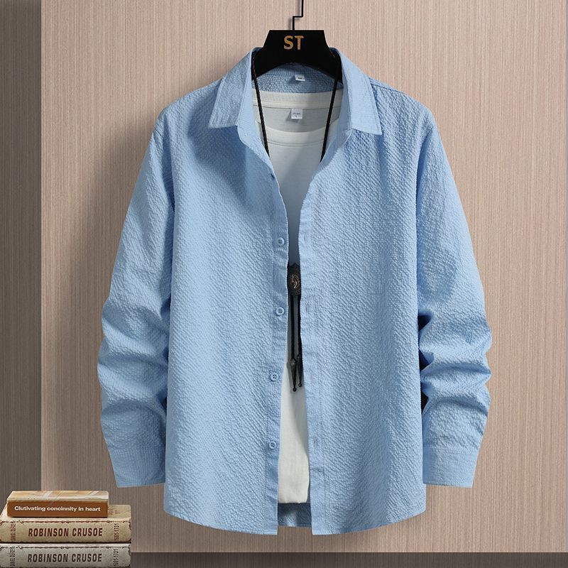 컬러 가을 새로운 seersucker 긴팔 셔츠 남성 셔츠 느슨한 캐주얼 얇은 코트스토어 가기