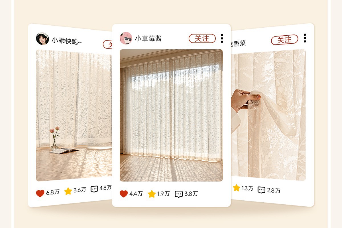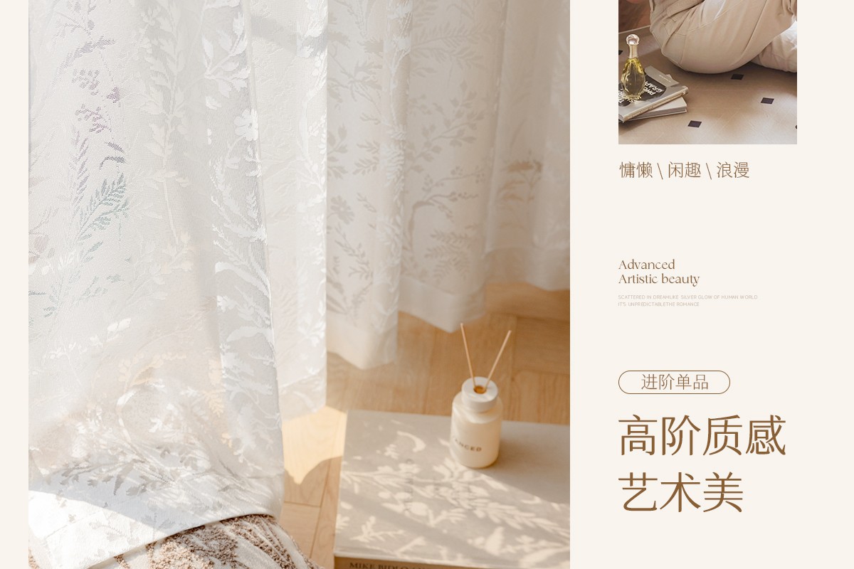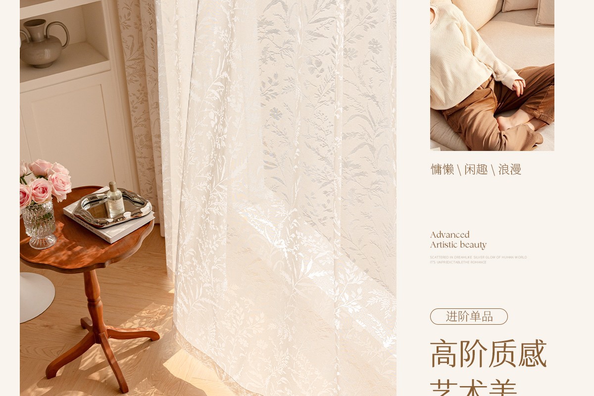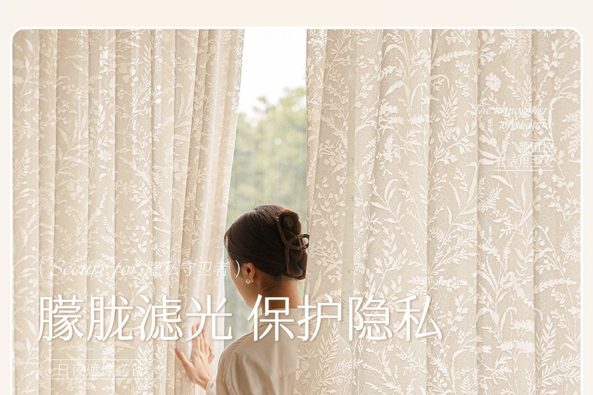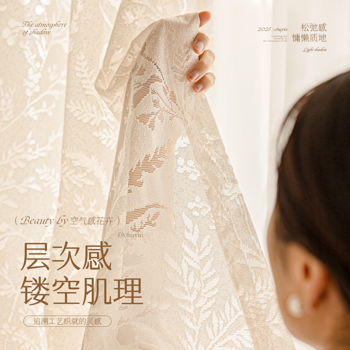 달 분기 그림자 커튼 프랑스 속이 빈 2025 새로운 발코니 거실 창 화면 투명 불투명 크림 원사스토어 가기