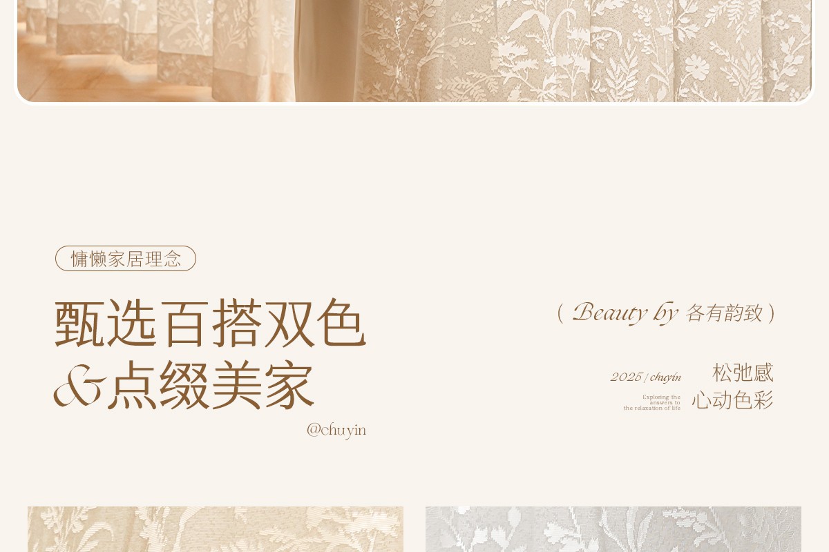 달 분기 그림자 커튼 프랑스 속이 빈 2025 새로운 발코니 거실 창 화면 투명 불투명 크림 원사