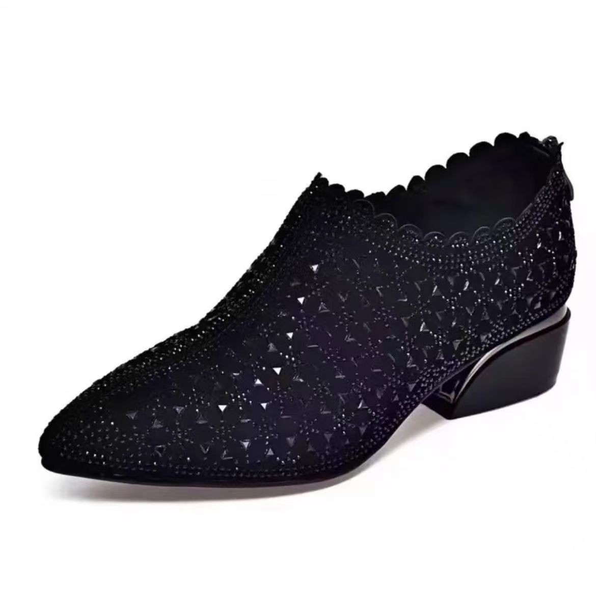봄과 가을 새로운 여성 청키 힐 신발 편안한 유럽과 미국의 메쉬 플래시 다이아몬드 패션 엄마 포인팅 발가락 신발 한국식 작업 신발스토어 가기