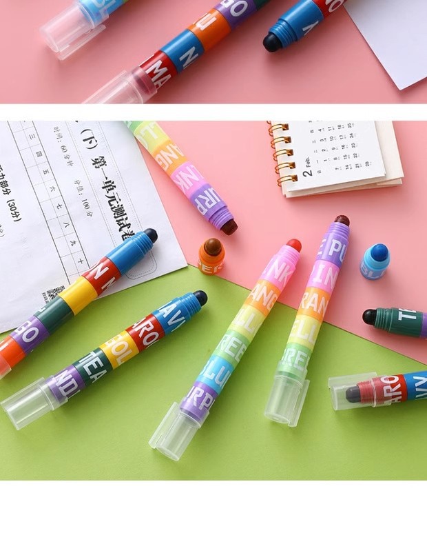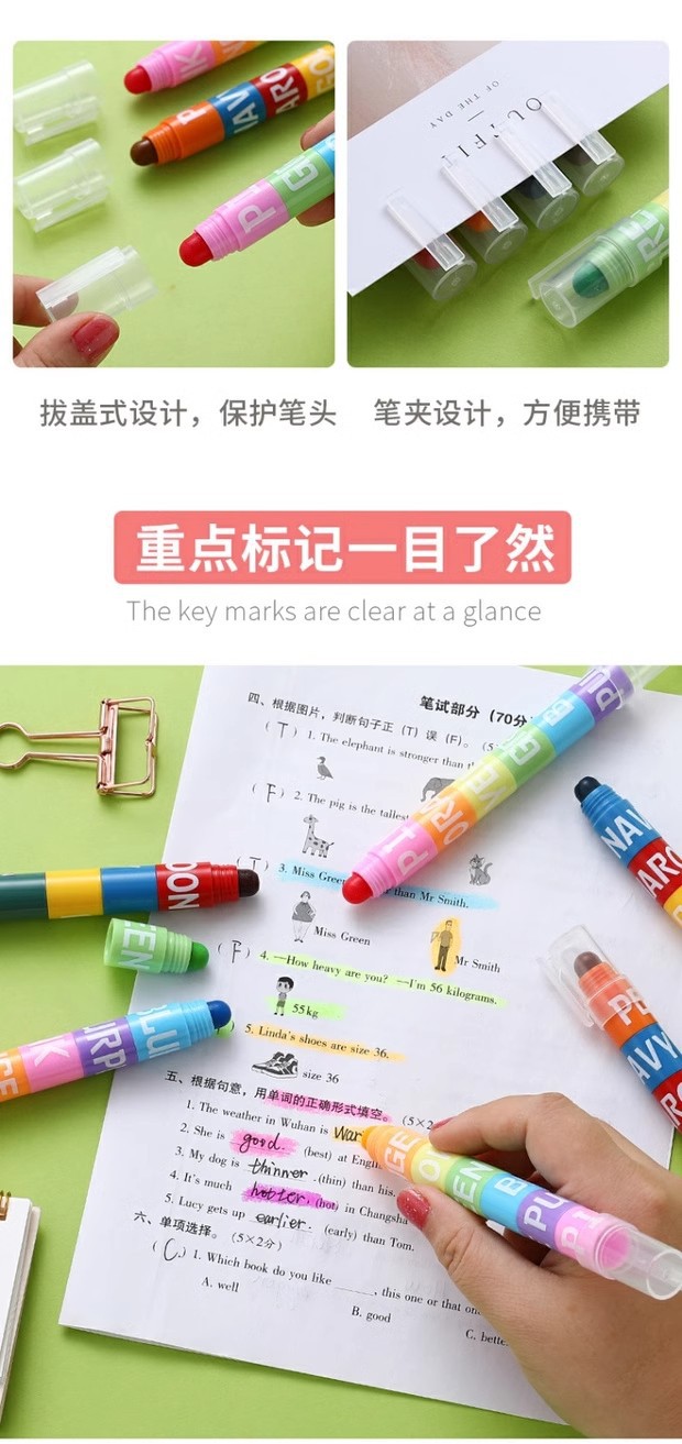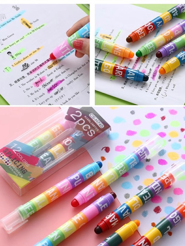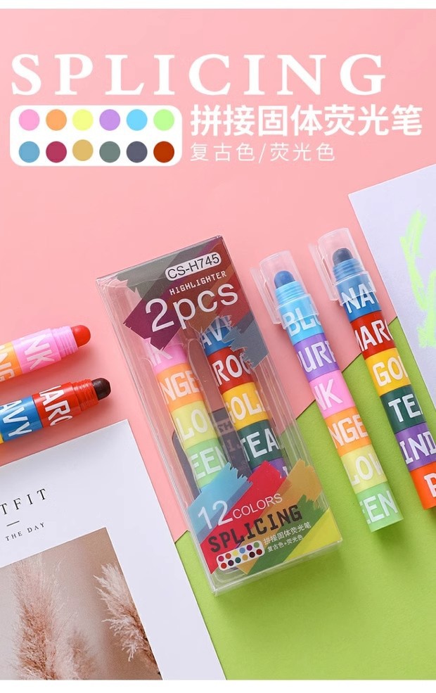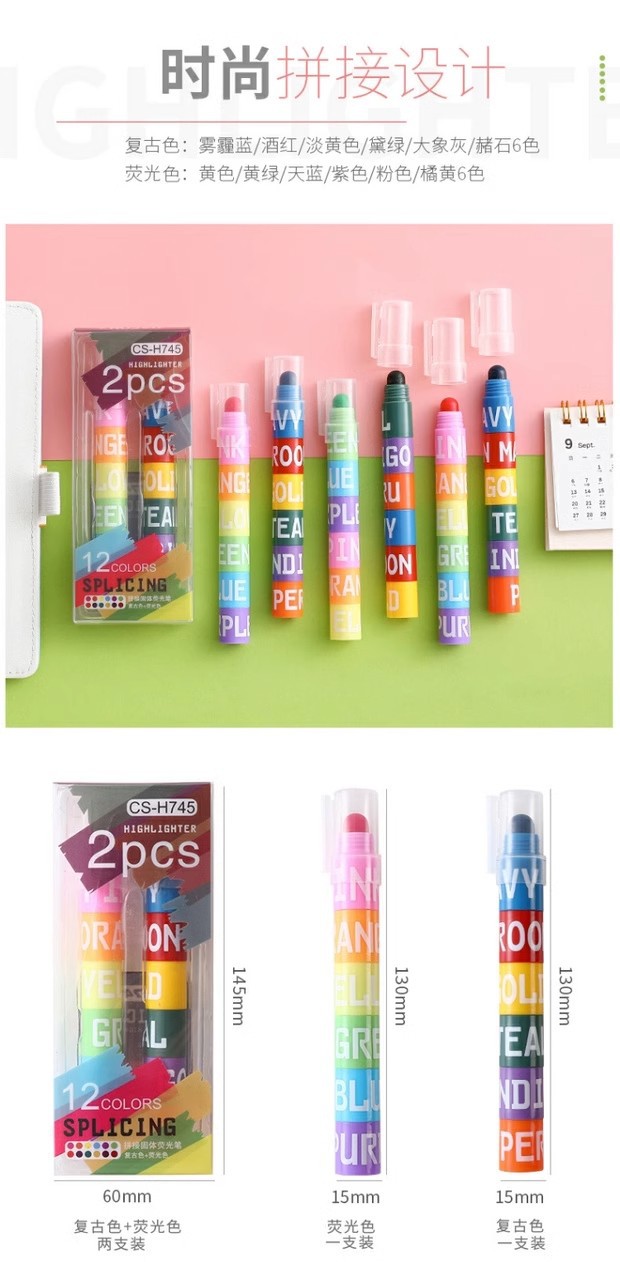 단색 하이 라이터 복고풍 형광 색상 마커 학생 12 색 세트 캔디 컬러 창조적 인 귀여운