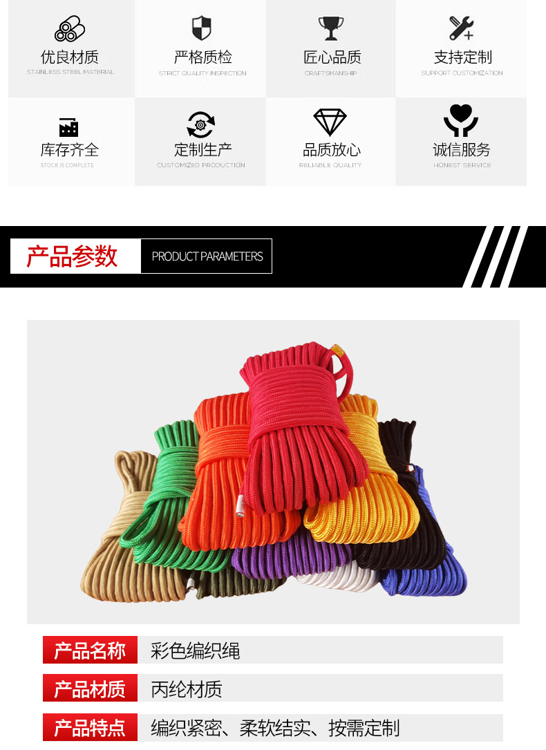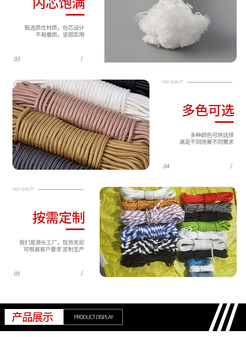 다채로운 땋은 로프, 나일론 로프, 장식 로프, 야외 빨랫줄, 땋은 로프, 조임 로프, 코어 패킹 로프 도매스토어 가기