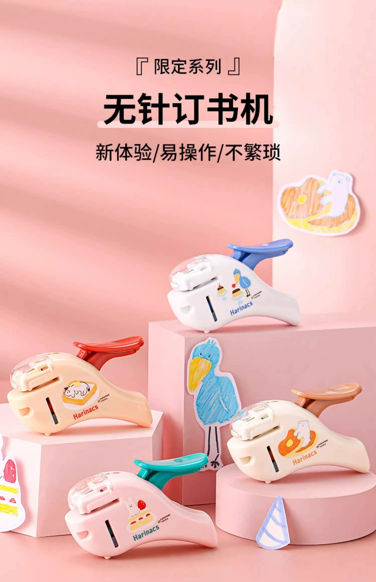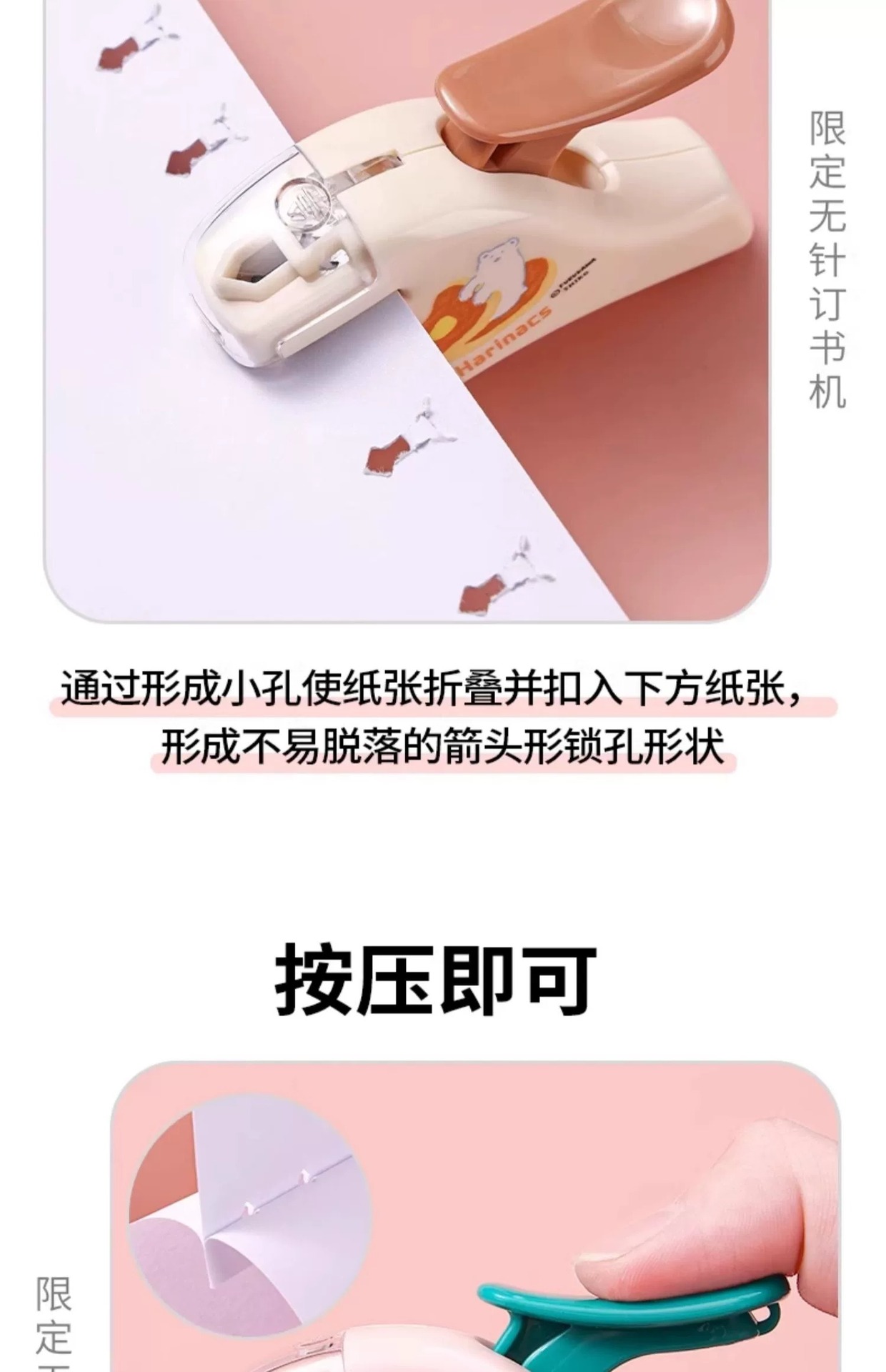 Guoyu 리미티드 니들 프리 스테이플러 마크리스 스테이플러 네일 프리 다기능 귀여운 휴대용 미니 테스트 종이 스테이플러