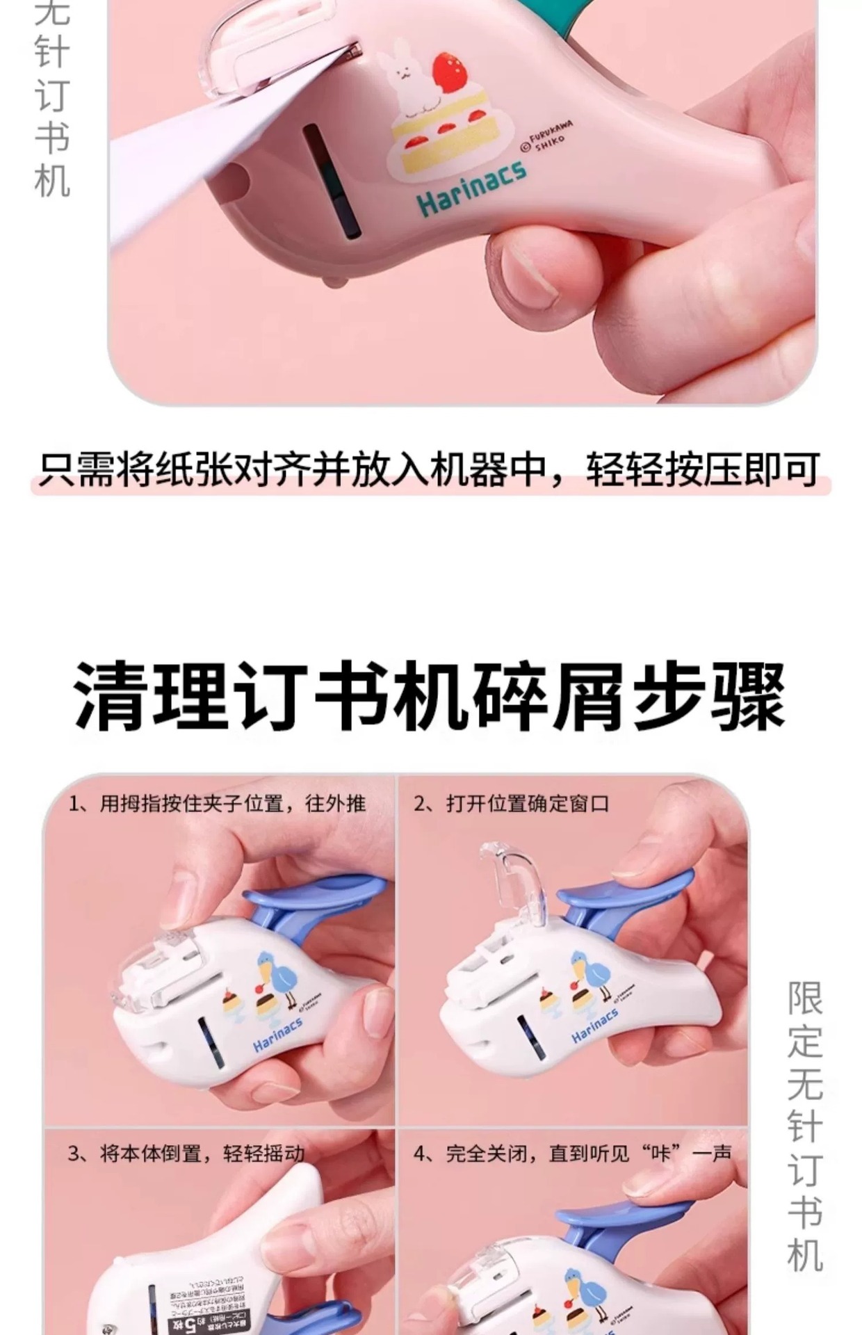 Guoyu 리미티드 니들 프리 스테이플러 마크리스 스테이플러 네일 프리 다기능 귀여운 휴대용 미니 테스트 종이 스테이플러스토어 가기